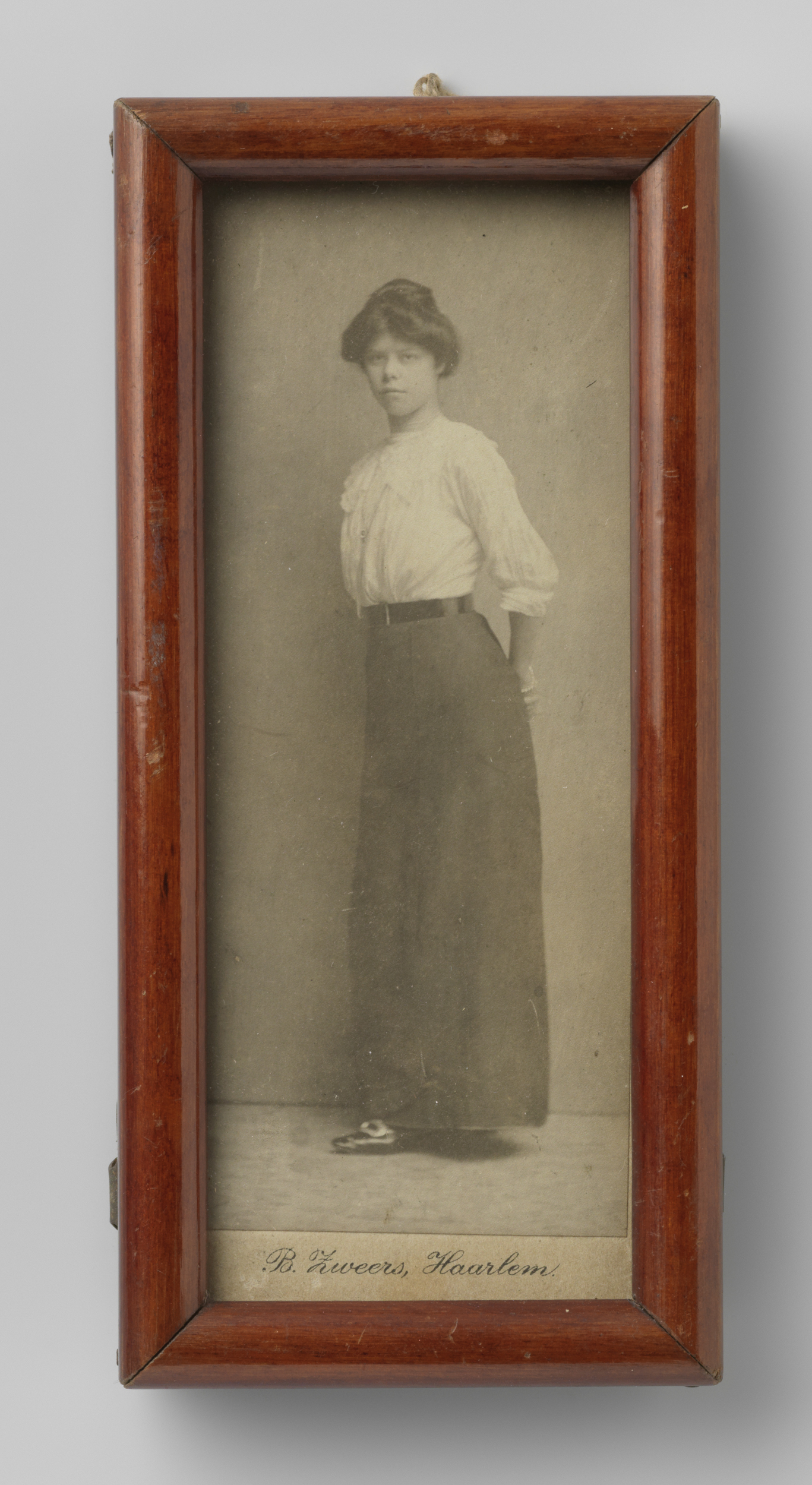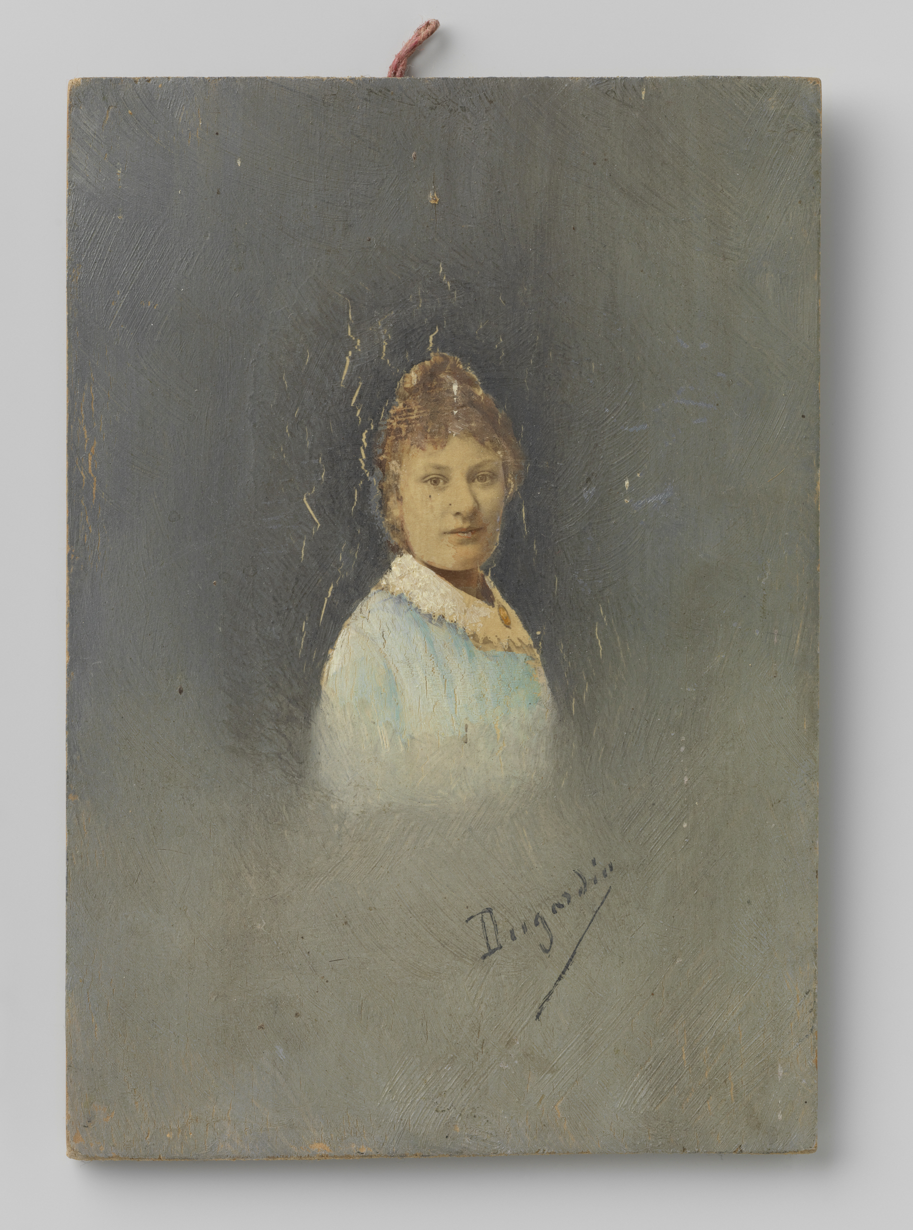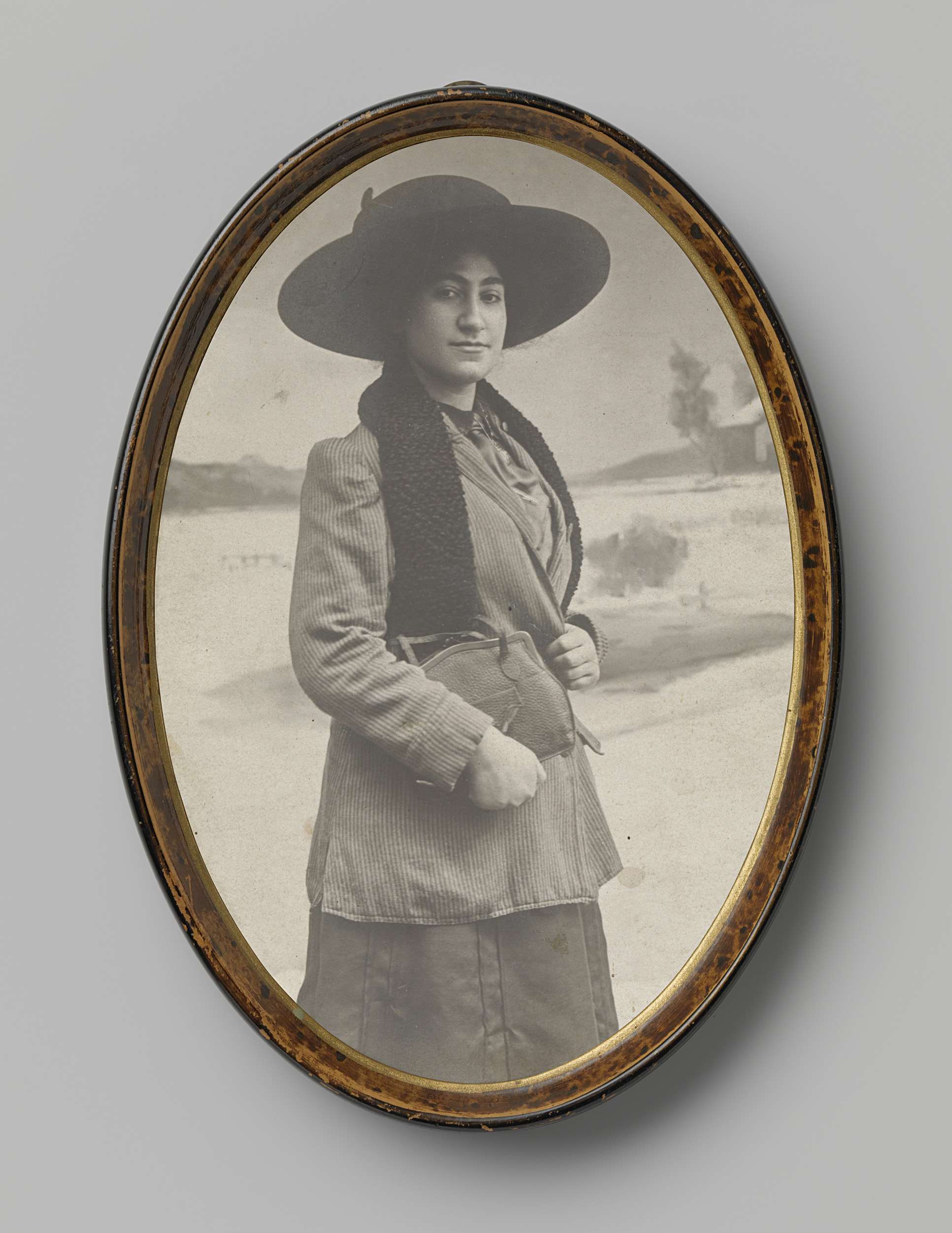 Portret van een onbekend meisje met hoed in haar hand
