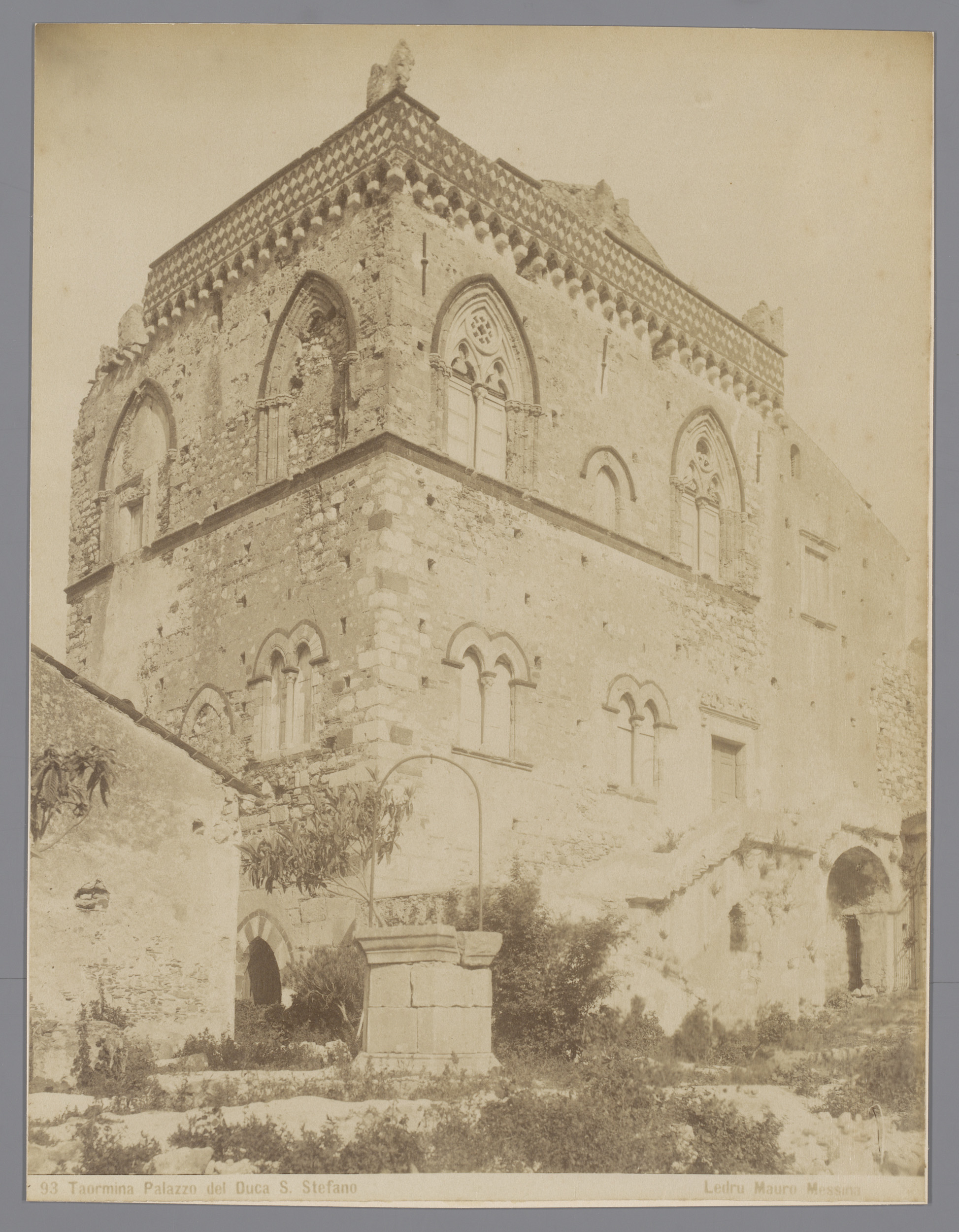Restanten van het Palazzo Badia Vecchia te Taormina,...