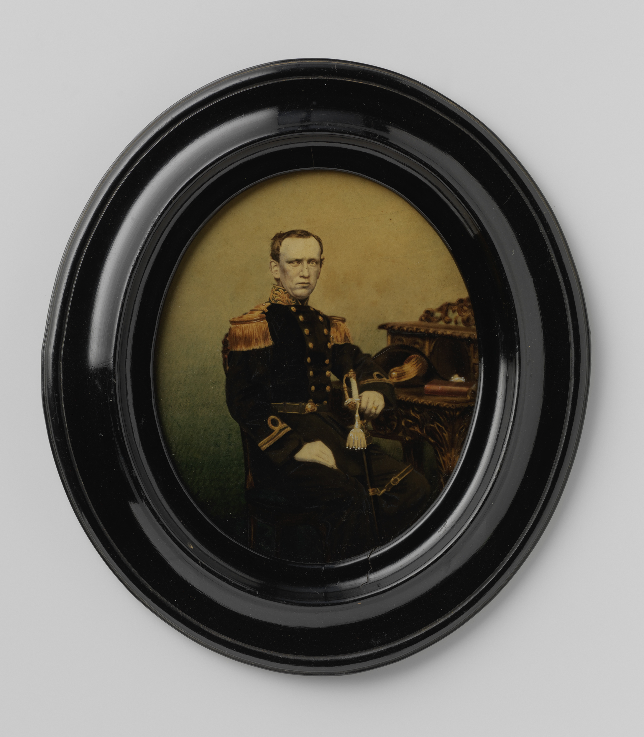 Portret van een onbekende man in uniform aan bureau
