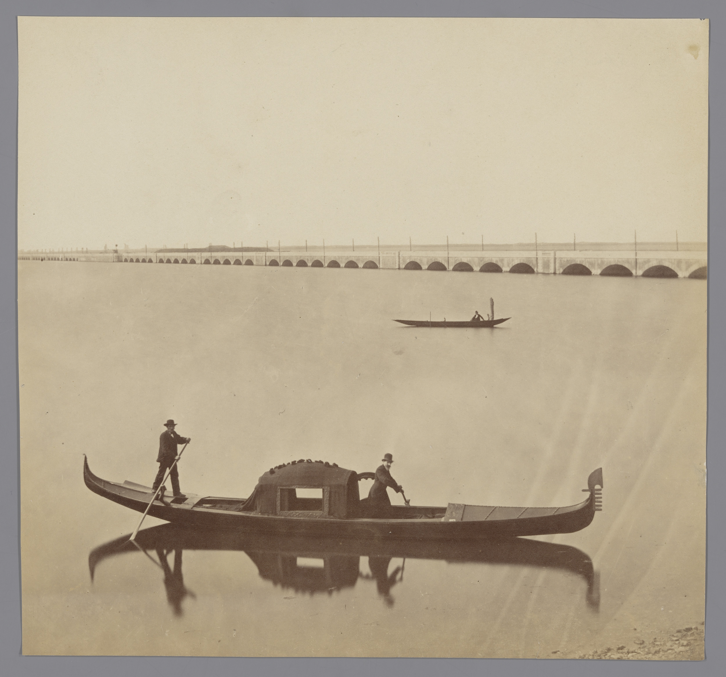 Twee gondels en de spoorlijn tussen Venetië en het v...