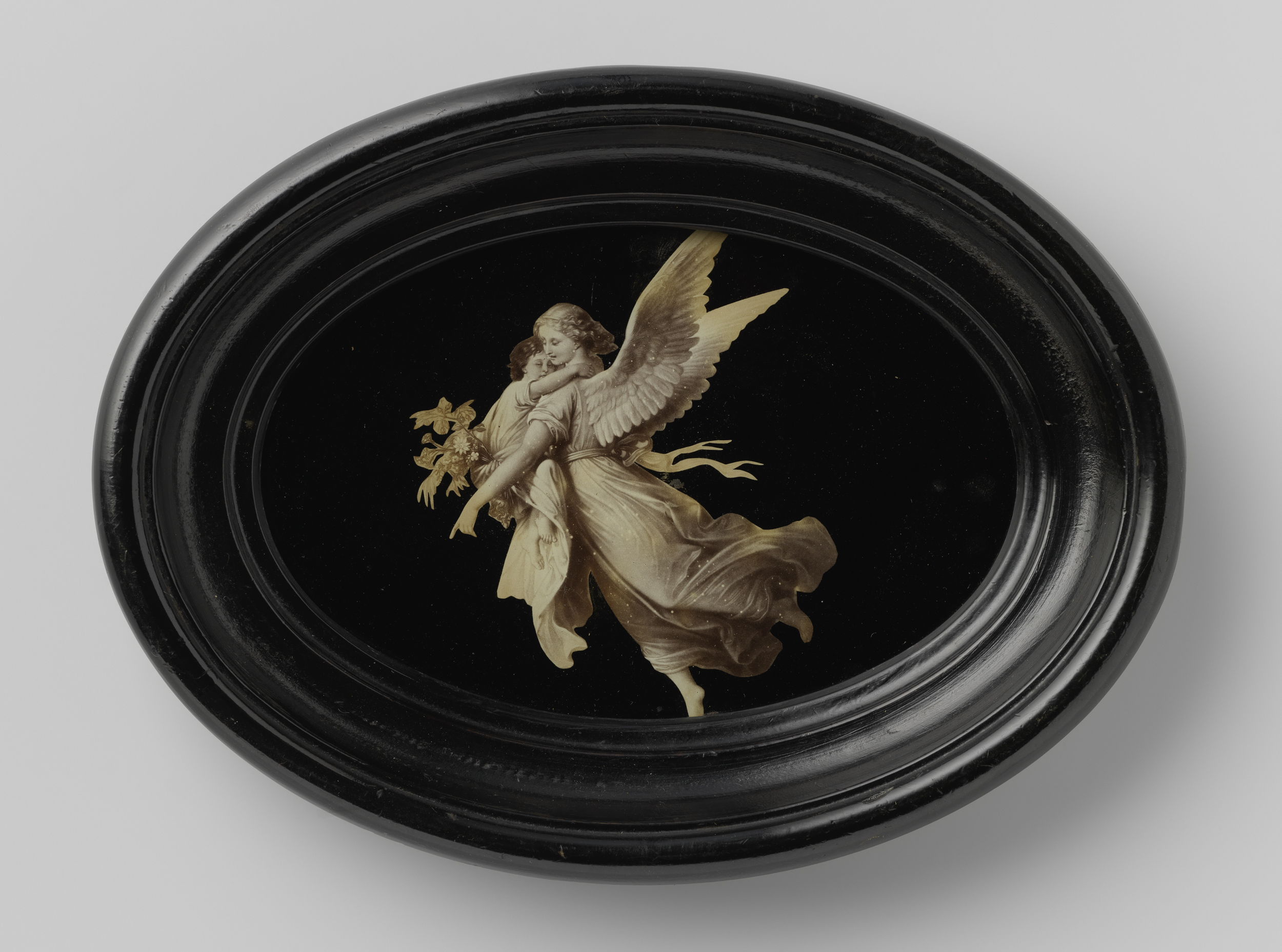 Sculptuur van een beschermengel met kind