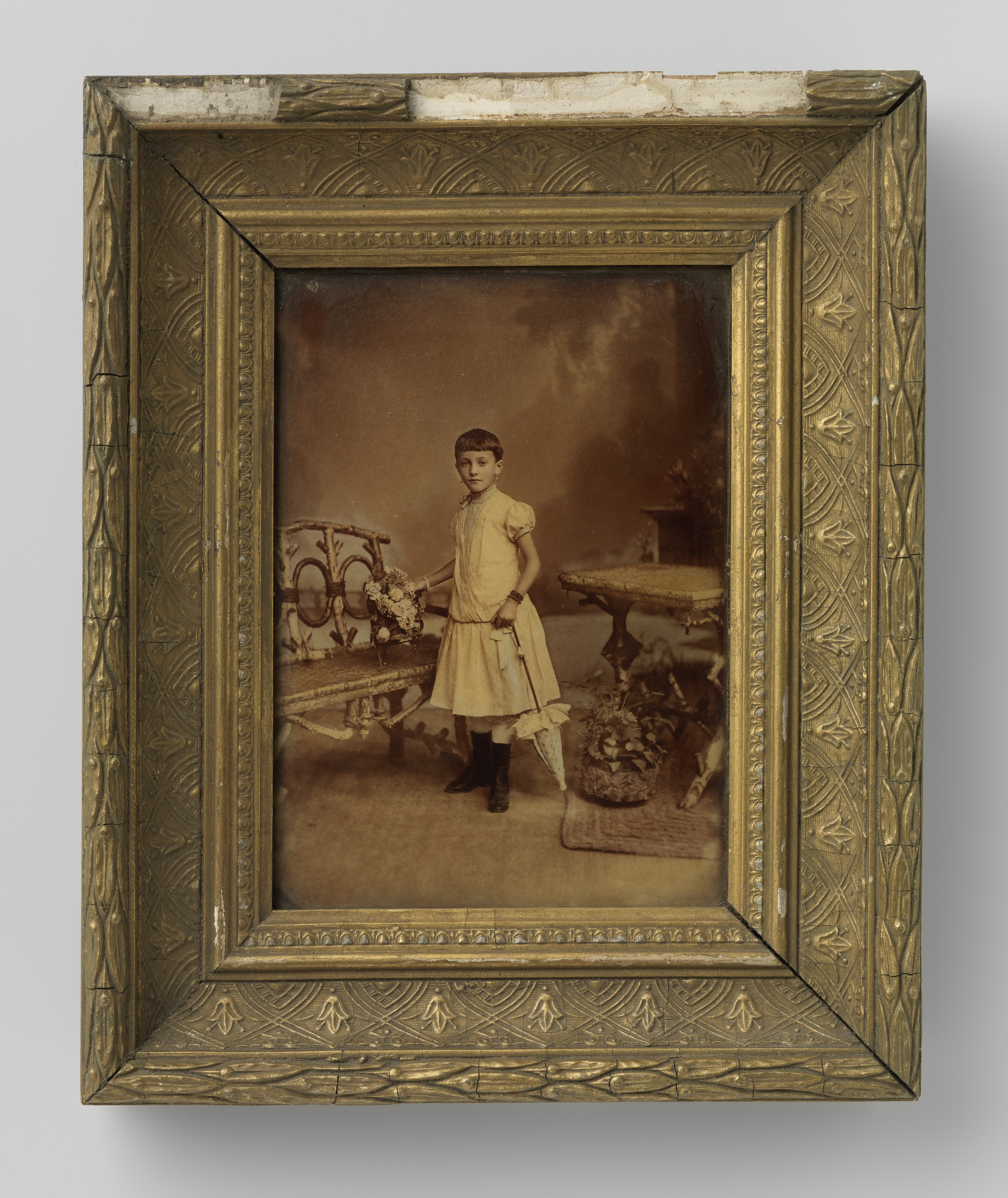 Portret van een onbekend meisje, staande naast een h...