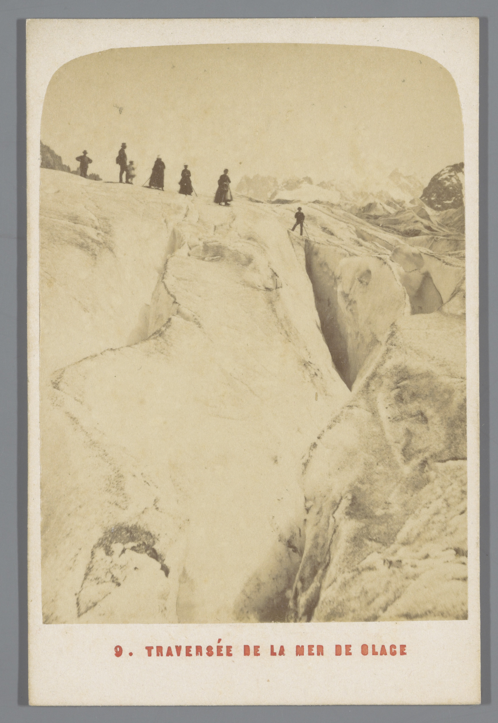 Gezelschap op de gletsjer Mer de Glace bij Chamonix,...