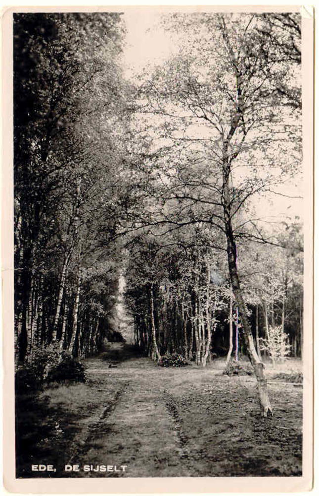 Dia van ansichtkaart met bosgezicht