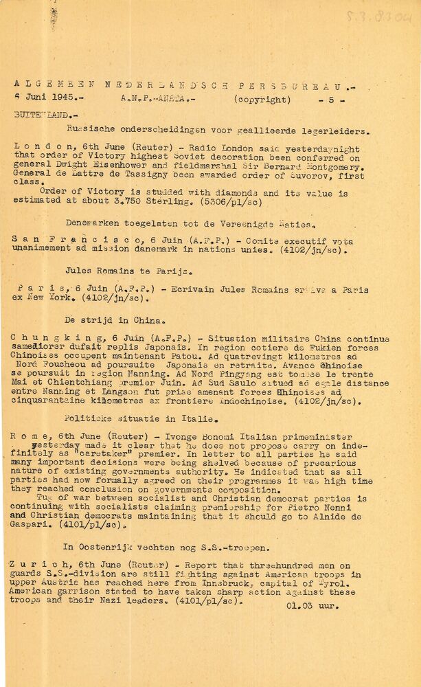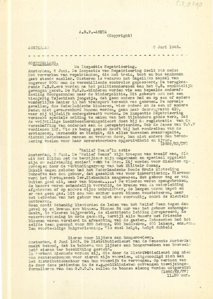 Algemeen Nederlandsch Persbureau, mededelingen, kant...
