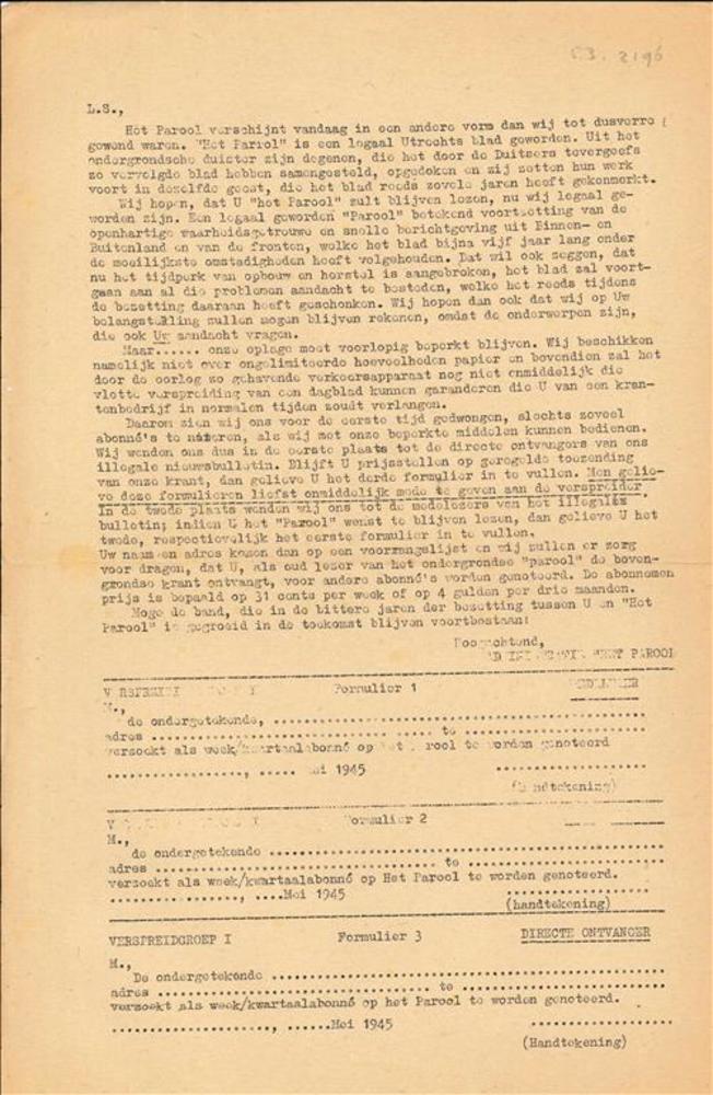 Het Parool Nieuwsbulletin voor Utrecht en omstreken,...