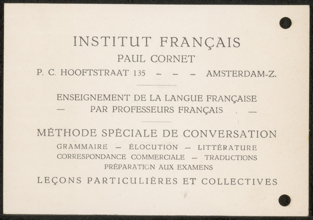 Kaart van "Institut Francais" Paul Cornet Amsterdam