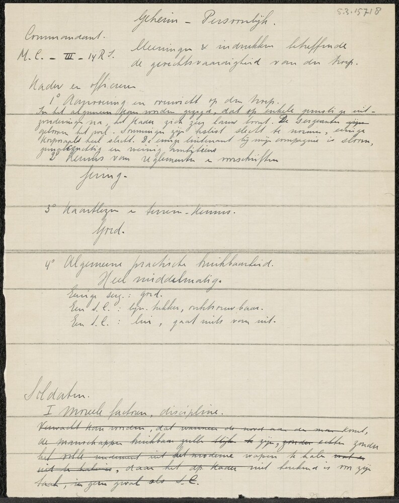 "Commandant M.C. - III - 14 R.I. Meeningen v. indruk...