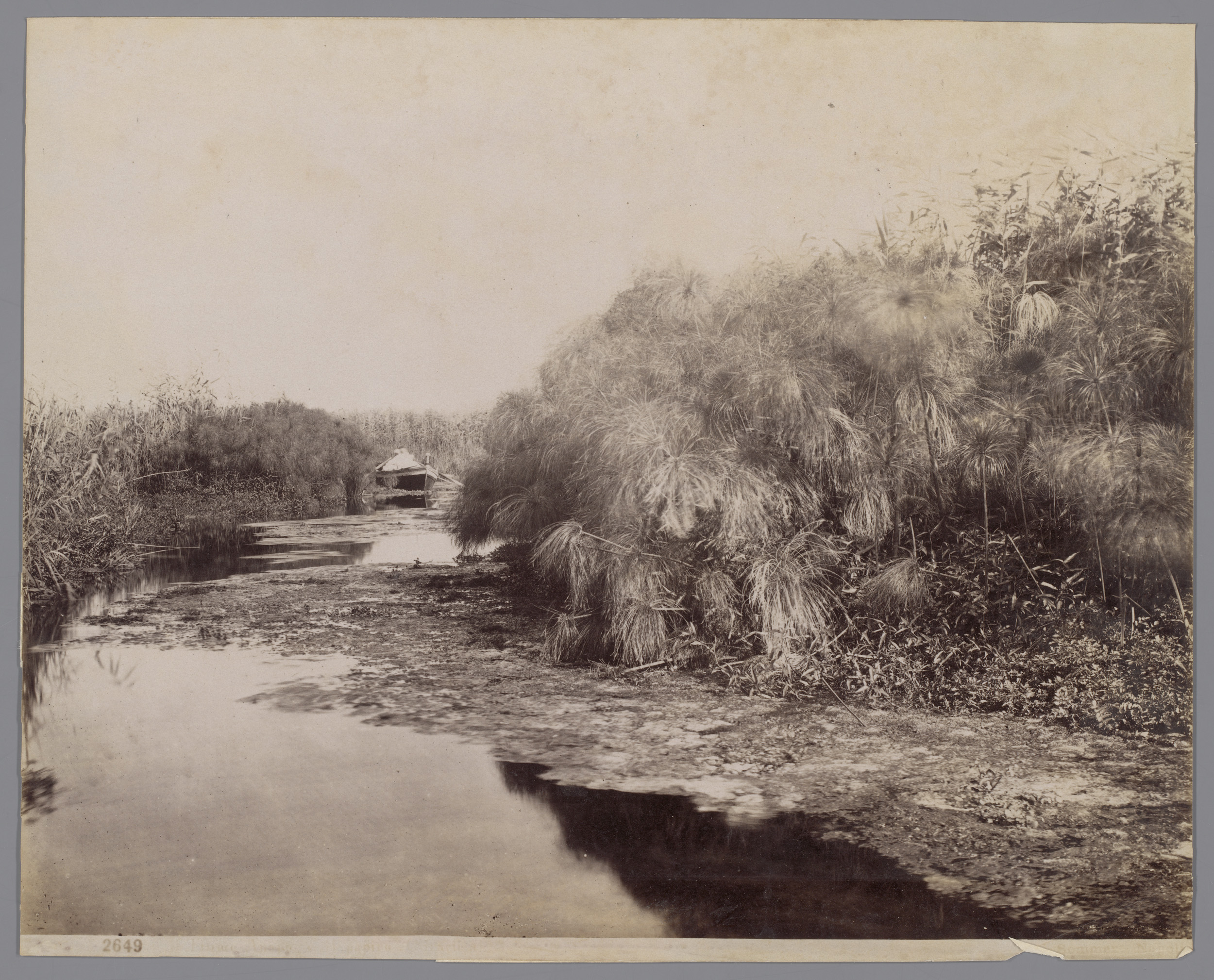 Roeiboot op de rivier Anapo nabij Syracuse, Italië