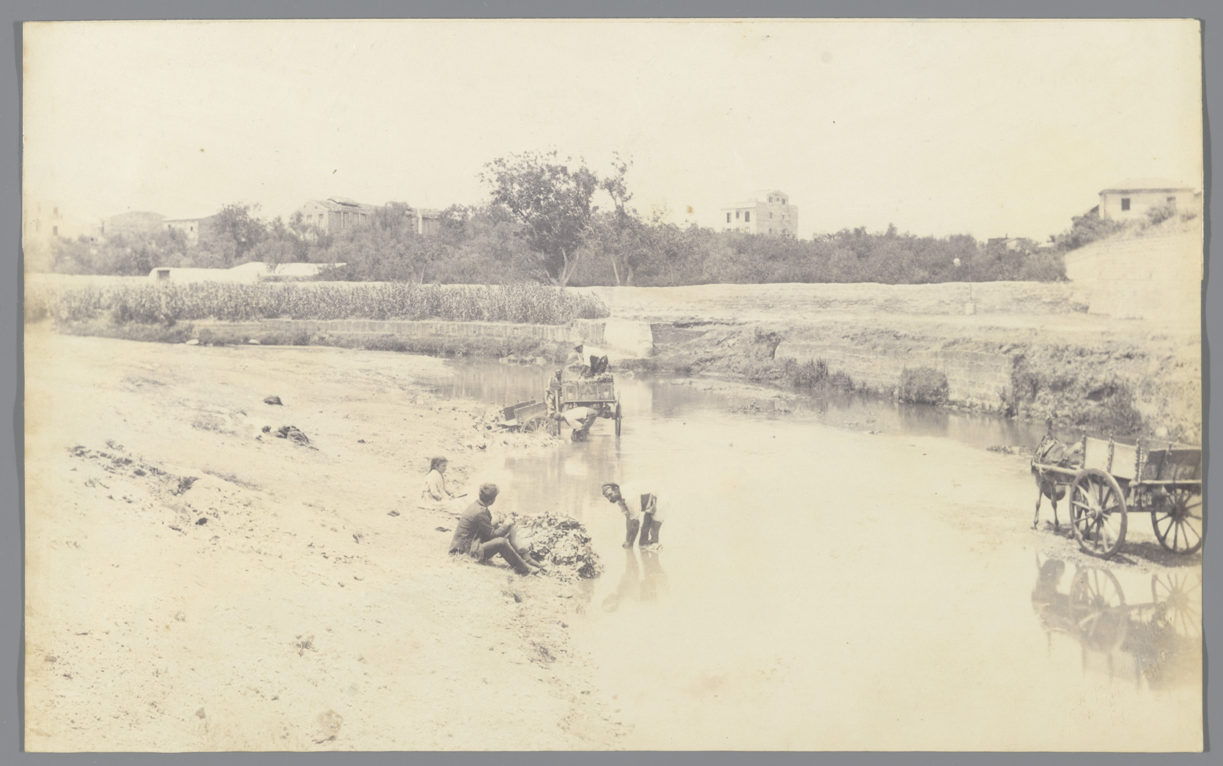 Drie mannen en een paard-en-wagen, vermoedelijk in I...
