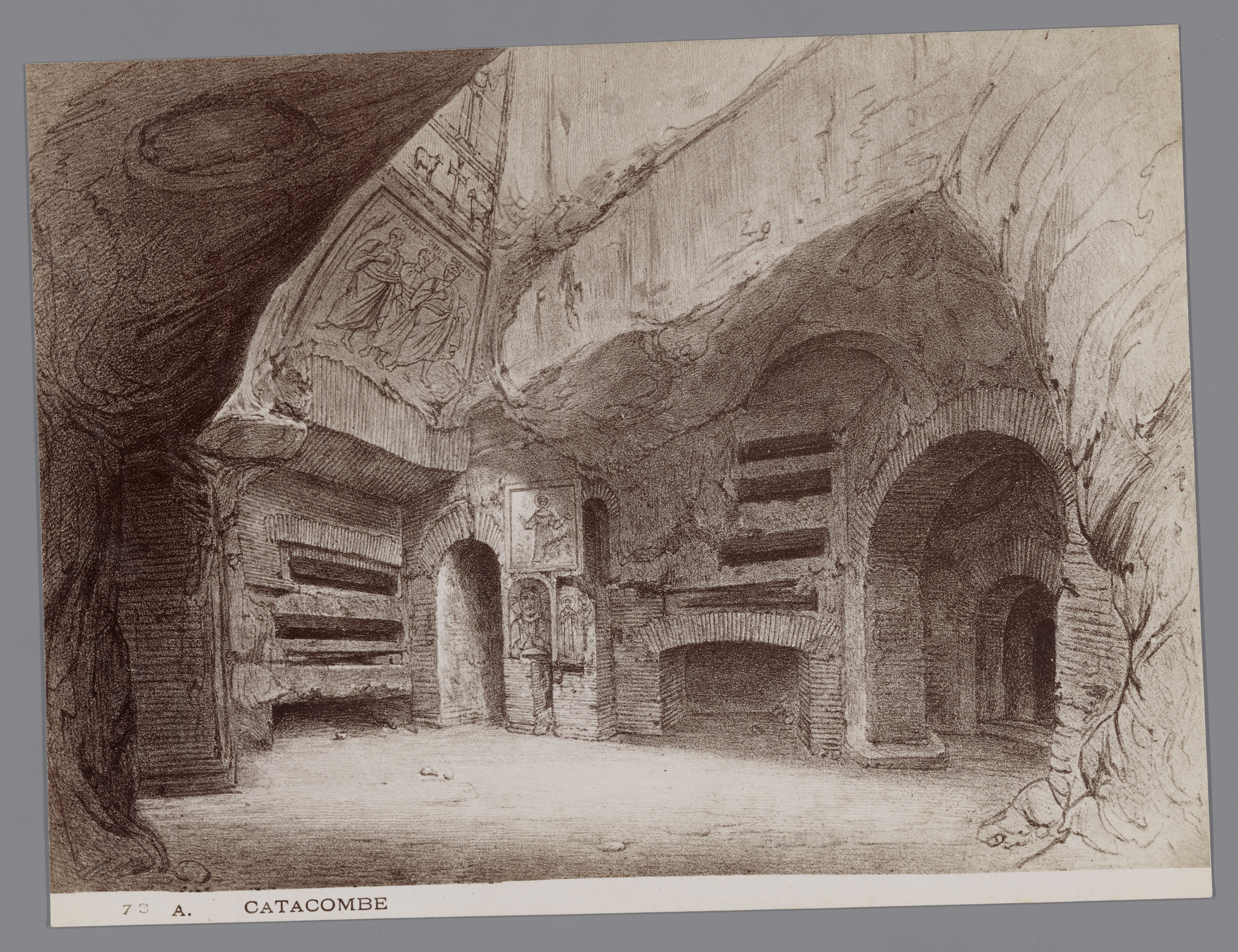Fotoreproductie van een tekening van de Catacomben v...