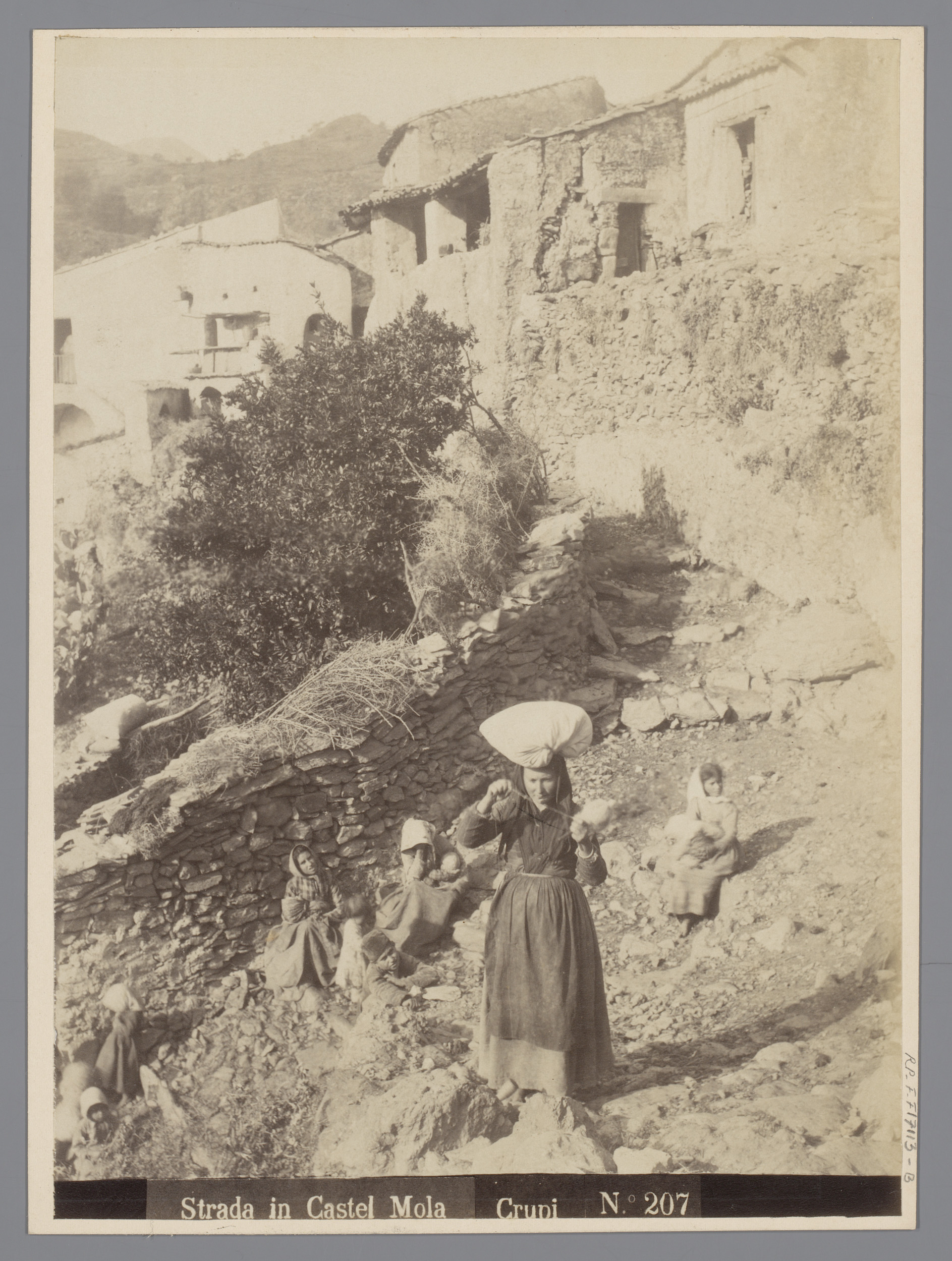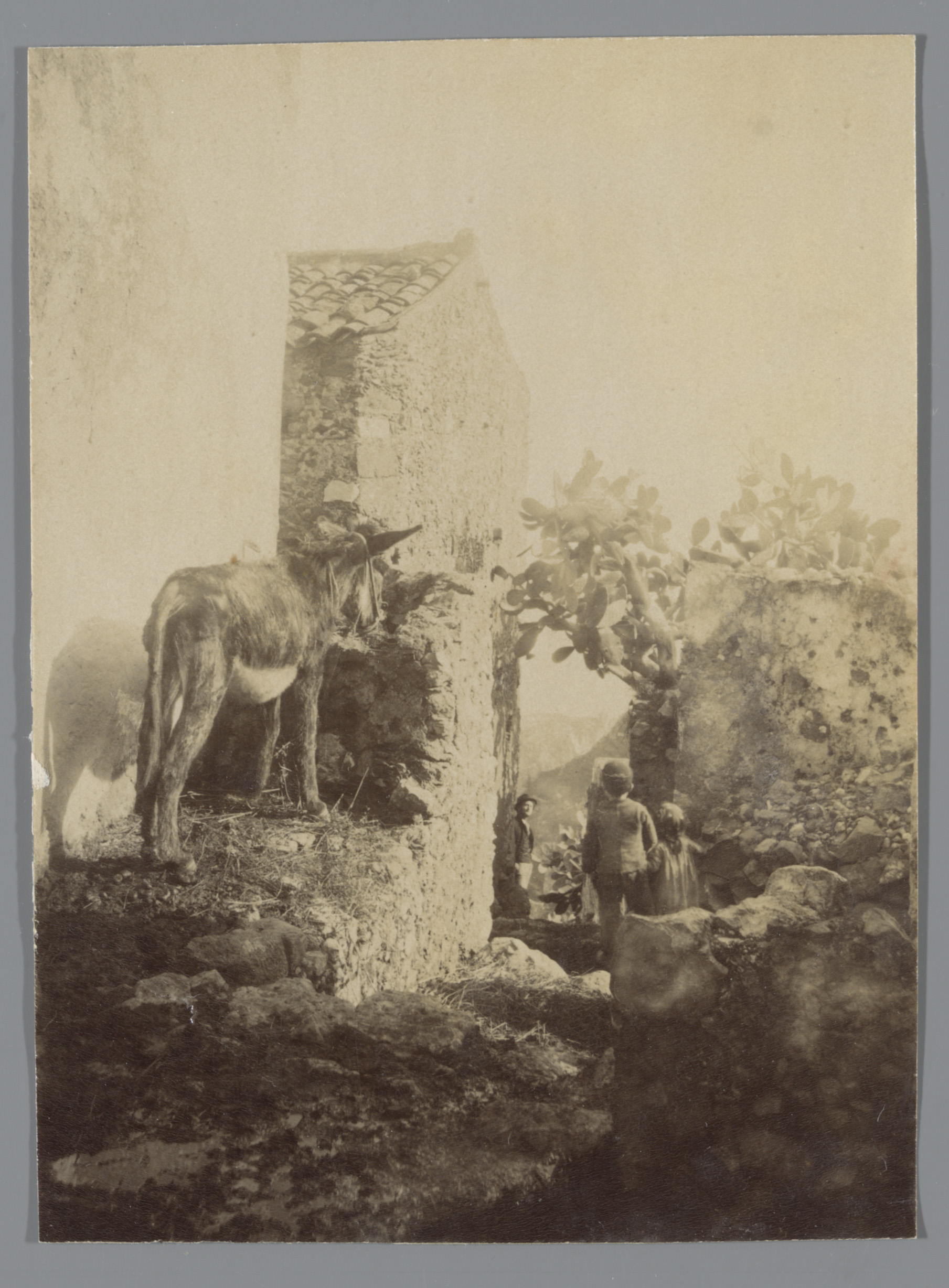 Steeg met enkele mensen en een ezel op Sicilië