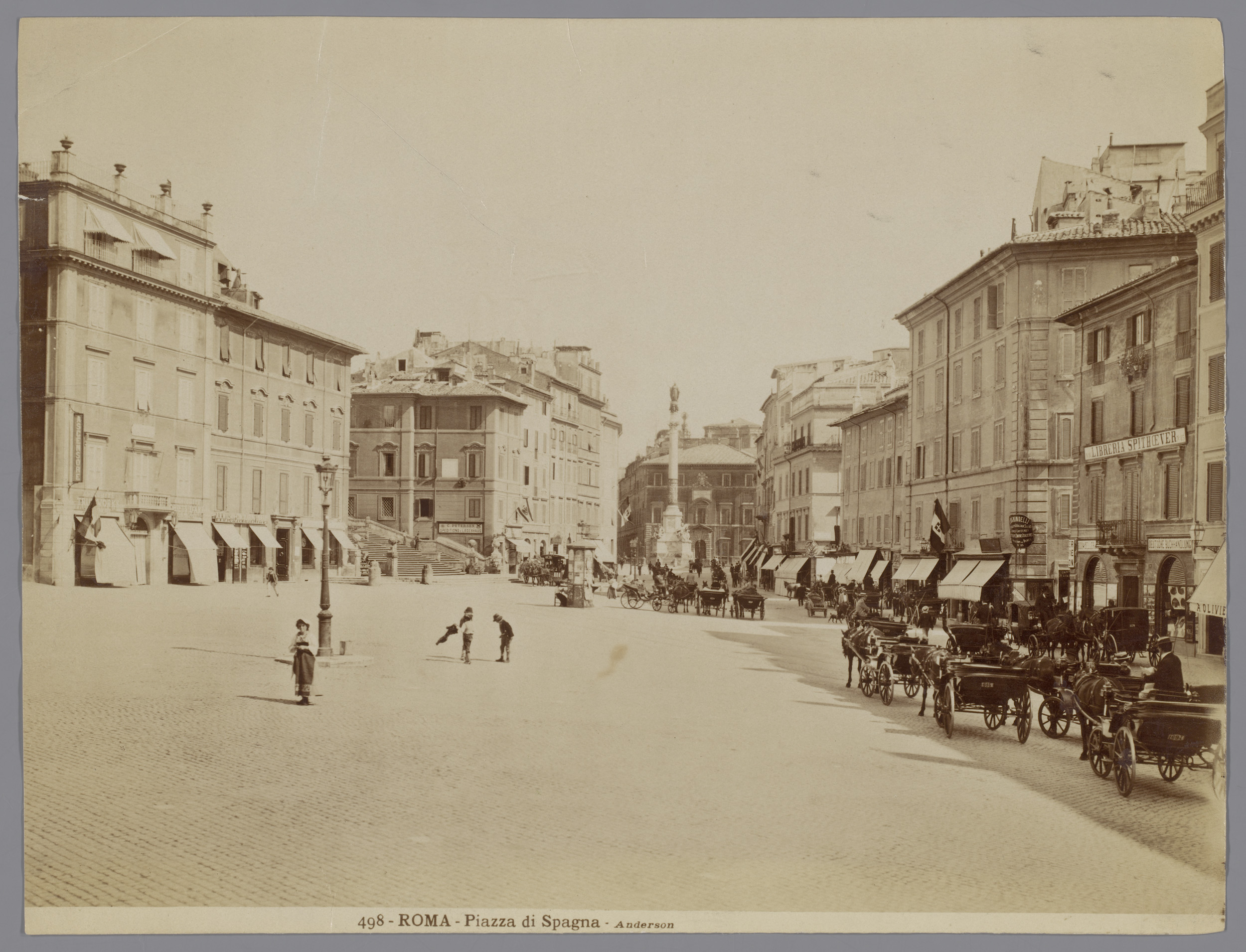 Gezicht op het Piazza di Spagna in Rome, in de verte...