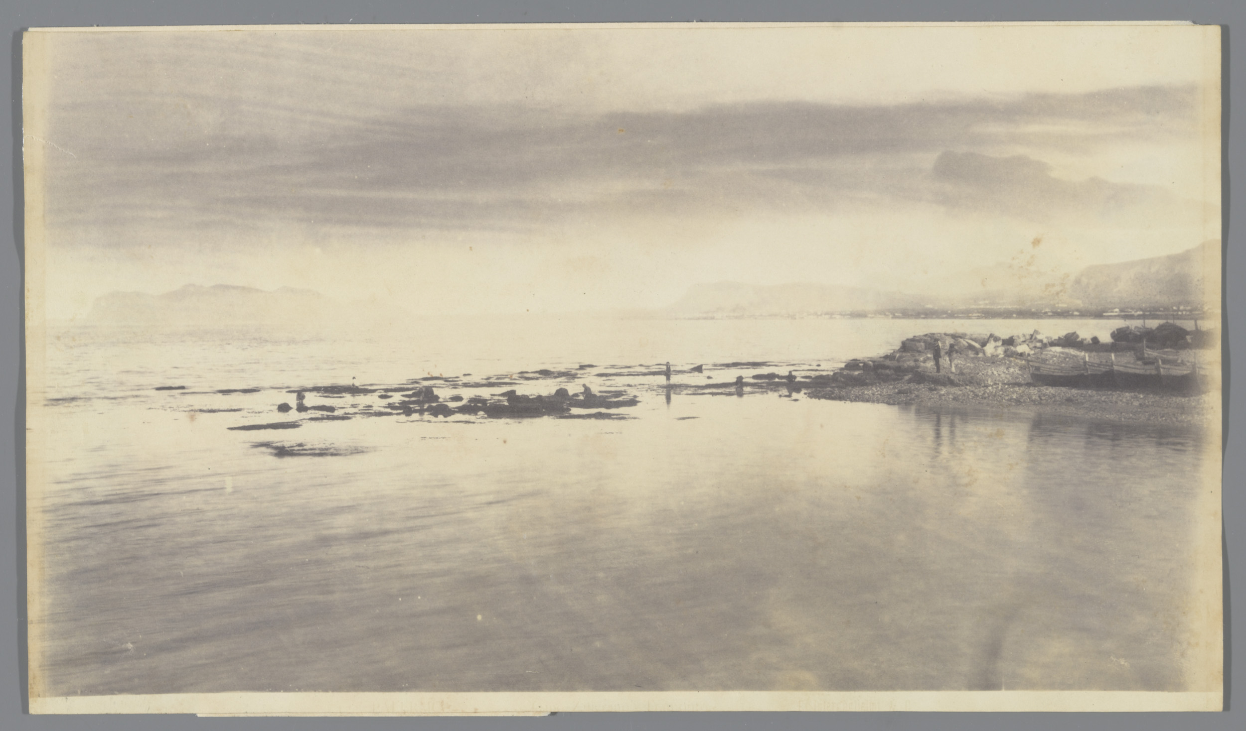 Kustgezicht op Sicilië, rechts enkele vissersboten o...