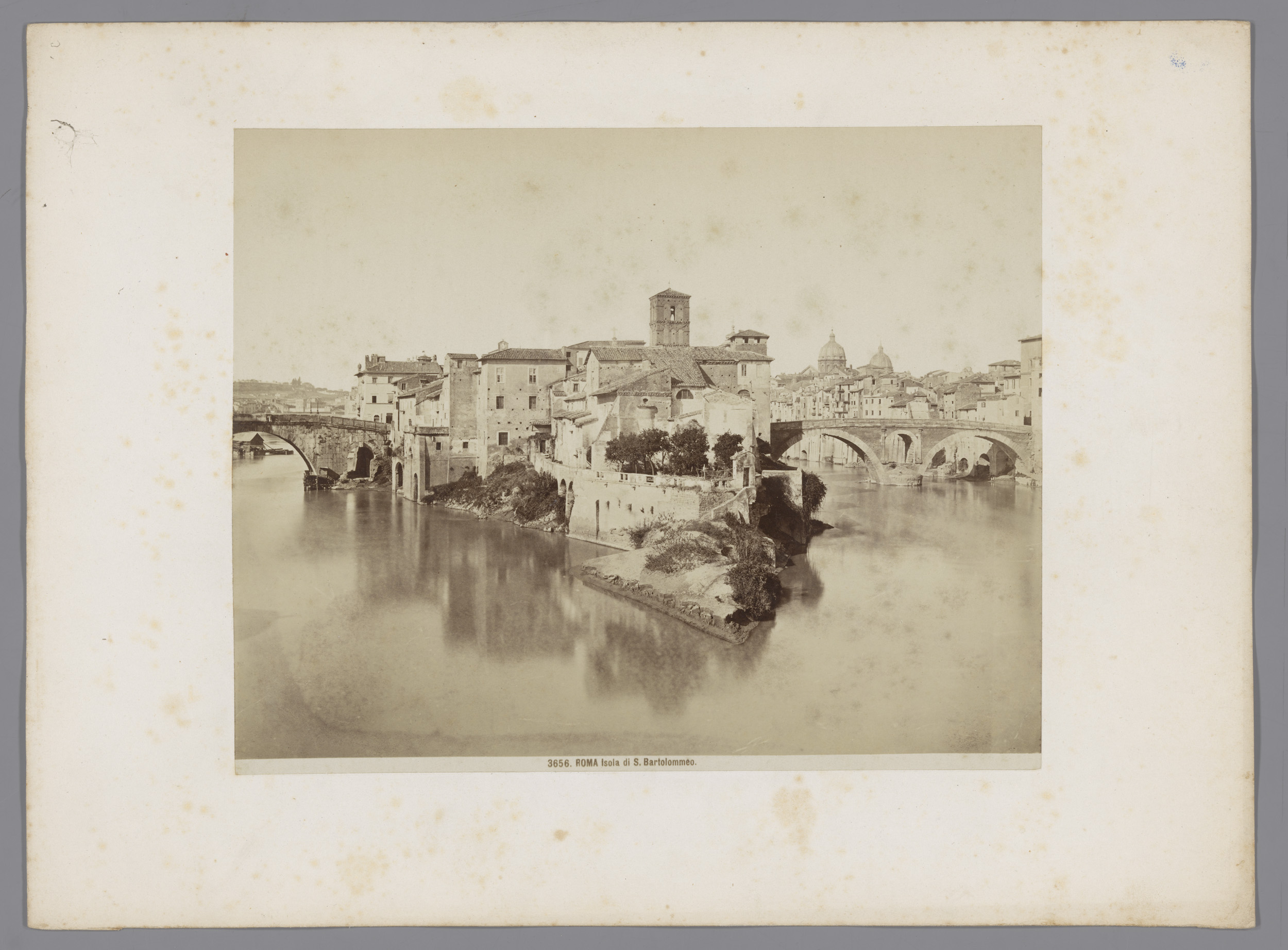 Gezicht op het Tibereiland te Rome
