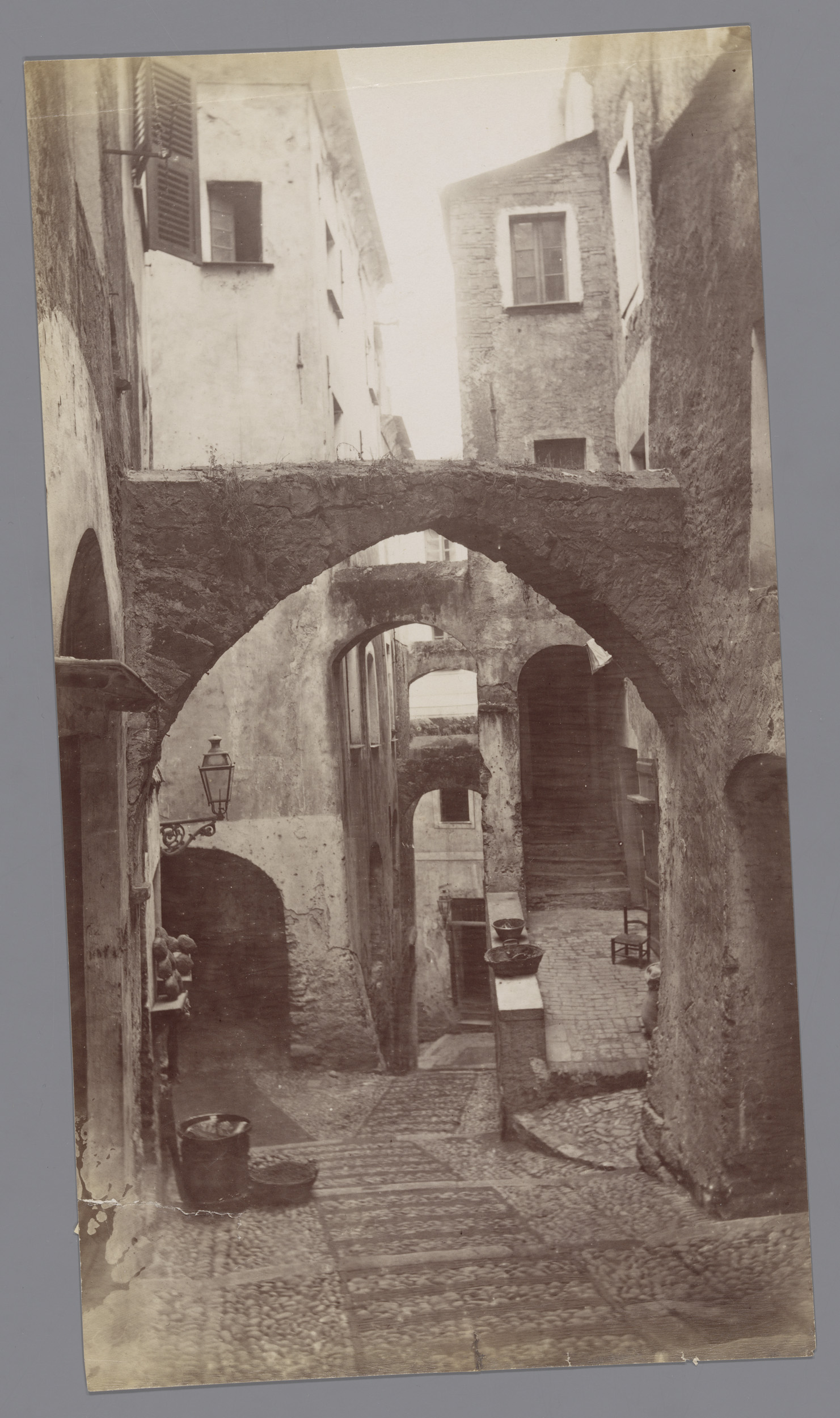 Gezicht op de boog van Drusus en daarachter de Porta...