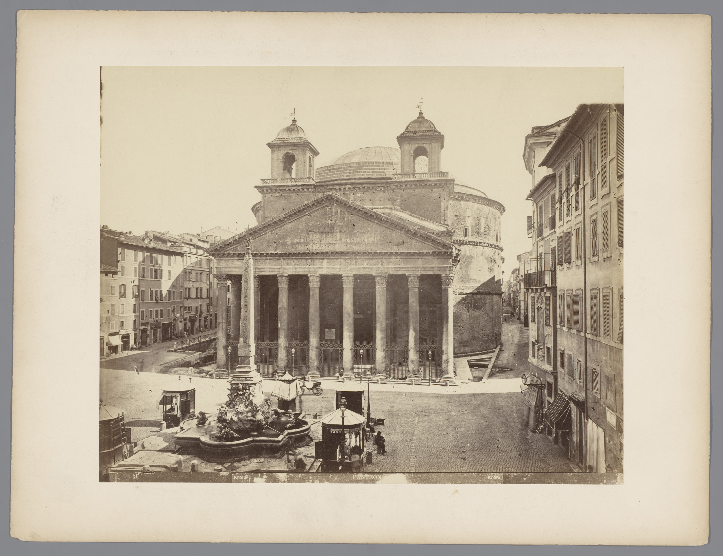 Gezicht op het Pantheon en de Macuteo obelisk te Rom...