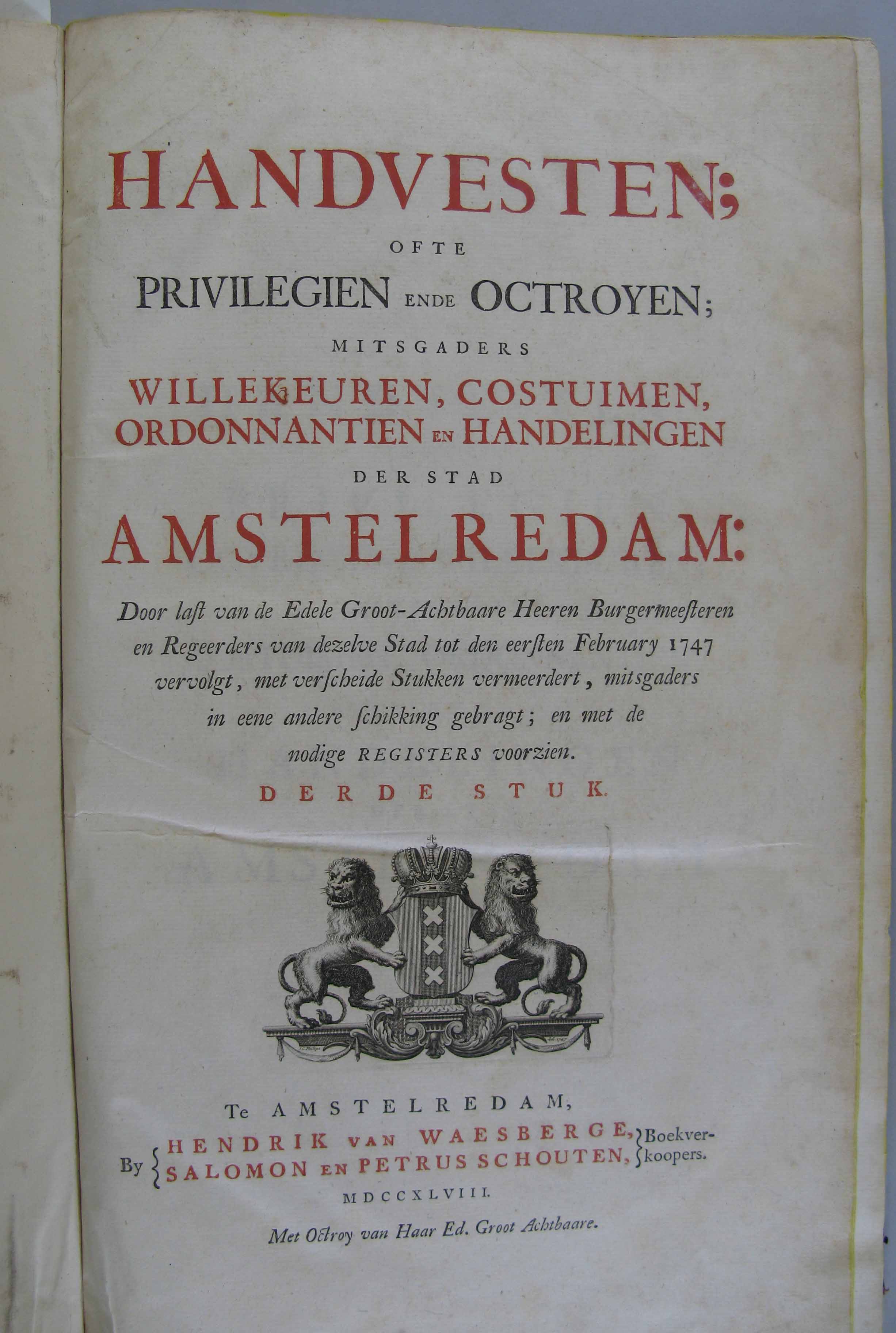 Hand-vesten; Priviligien, Handelingen, Costuymen, en...