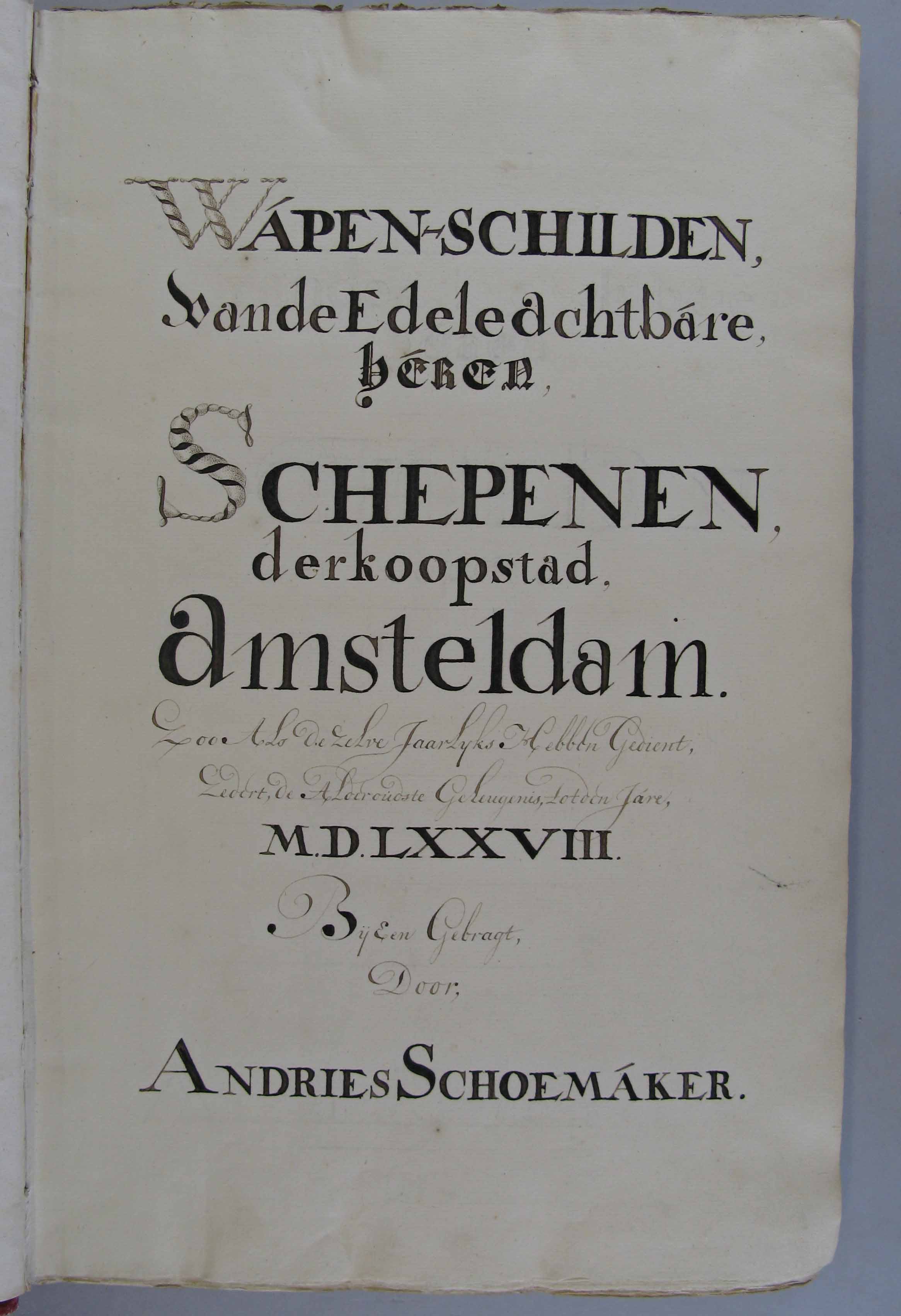Wapen-Schilden, vande Edele Achtbare heren schepenen...
