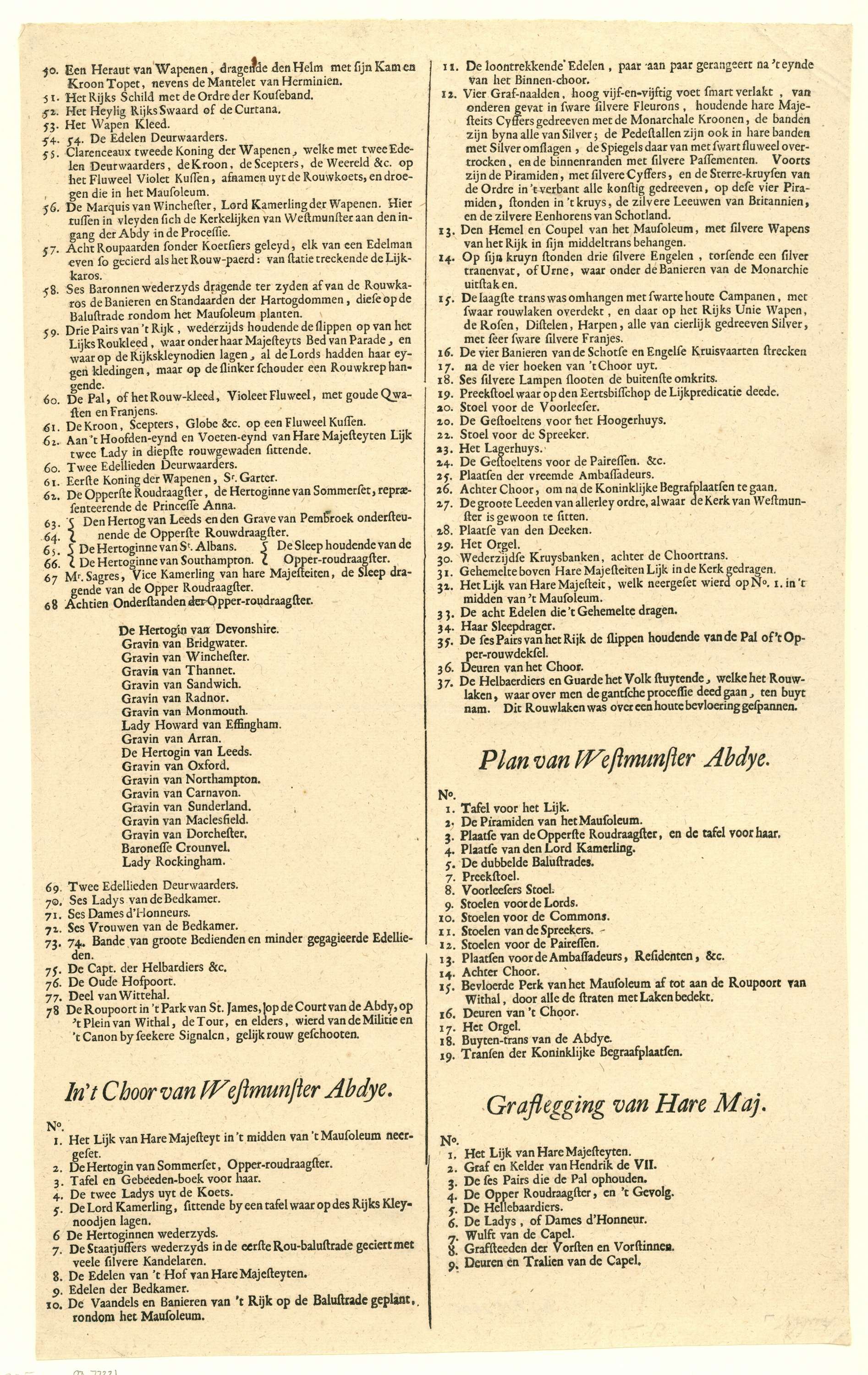 Legenda bij de laatste drie platen uit de prentenser...