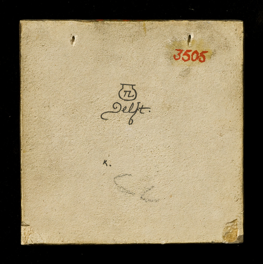 Tegel van keramiek met tinglazuur, voorstellende: or...