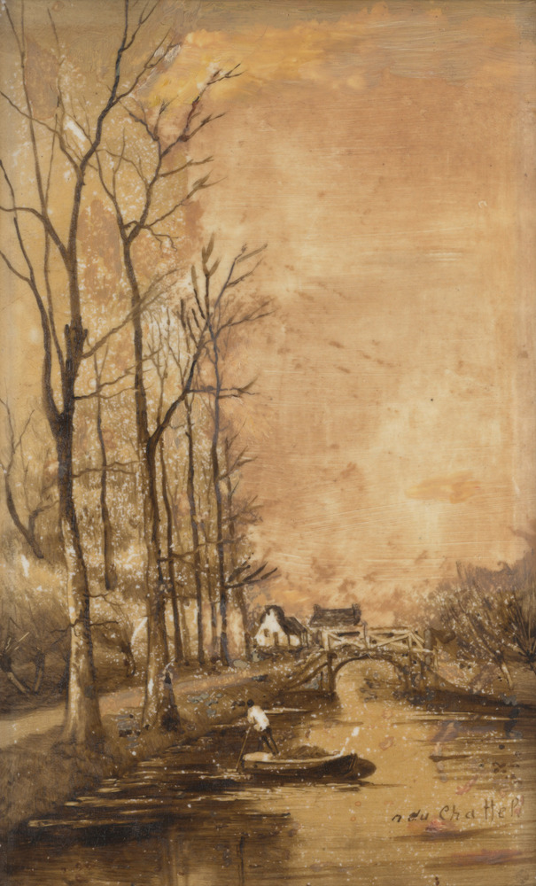 Tegel in transfer-techniek, met voorstelling: Orname...