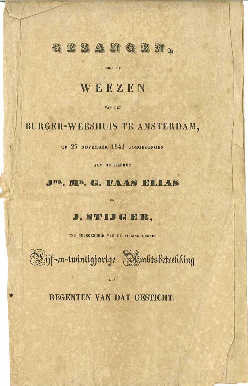 Gezangen door de weezen van het Burger-Weeshuis te A...