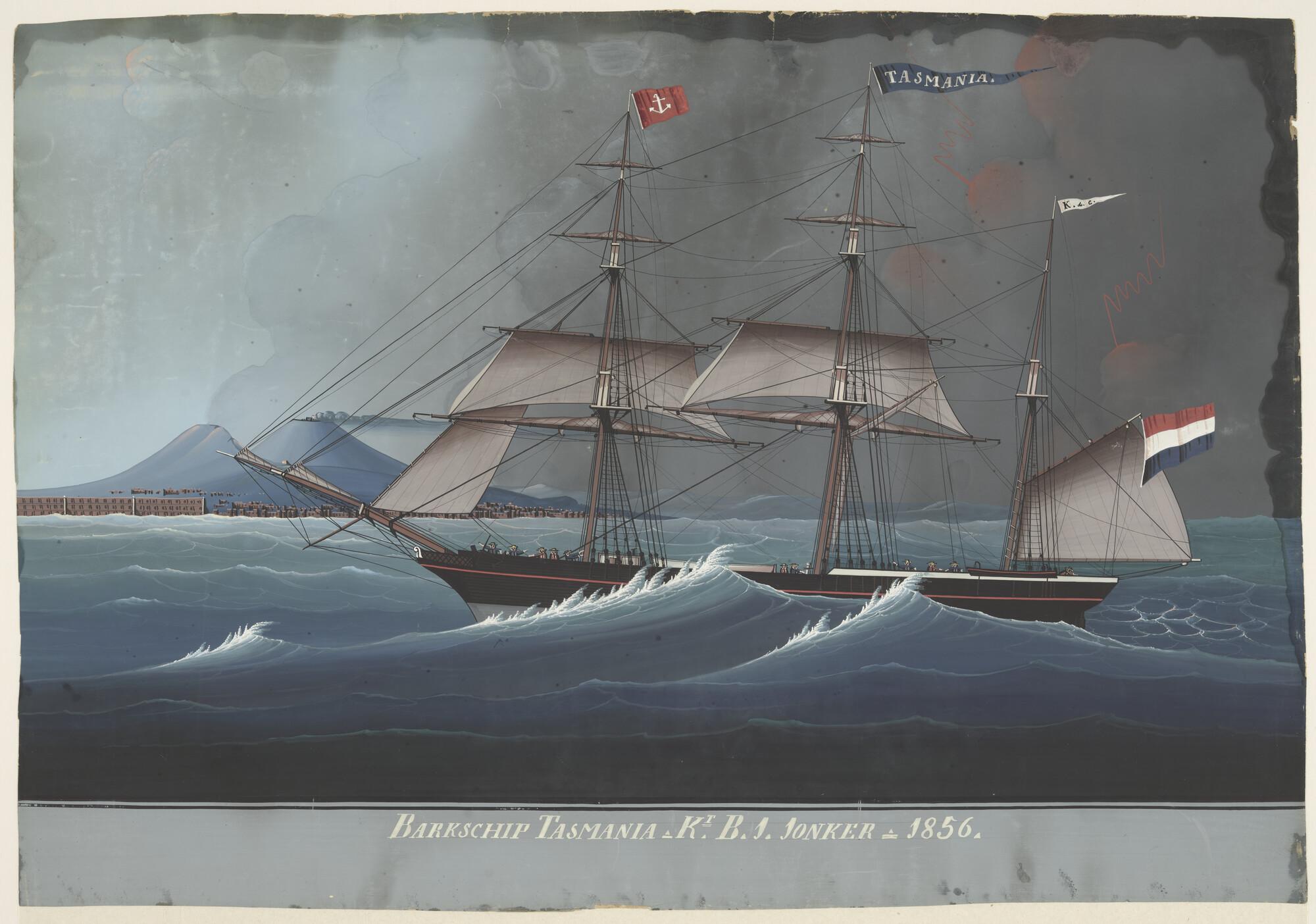 Het barkschip 'Tasmania' onder klien zeil ter hoogte...