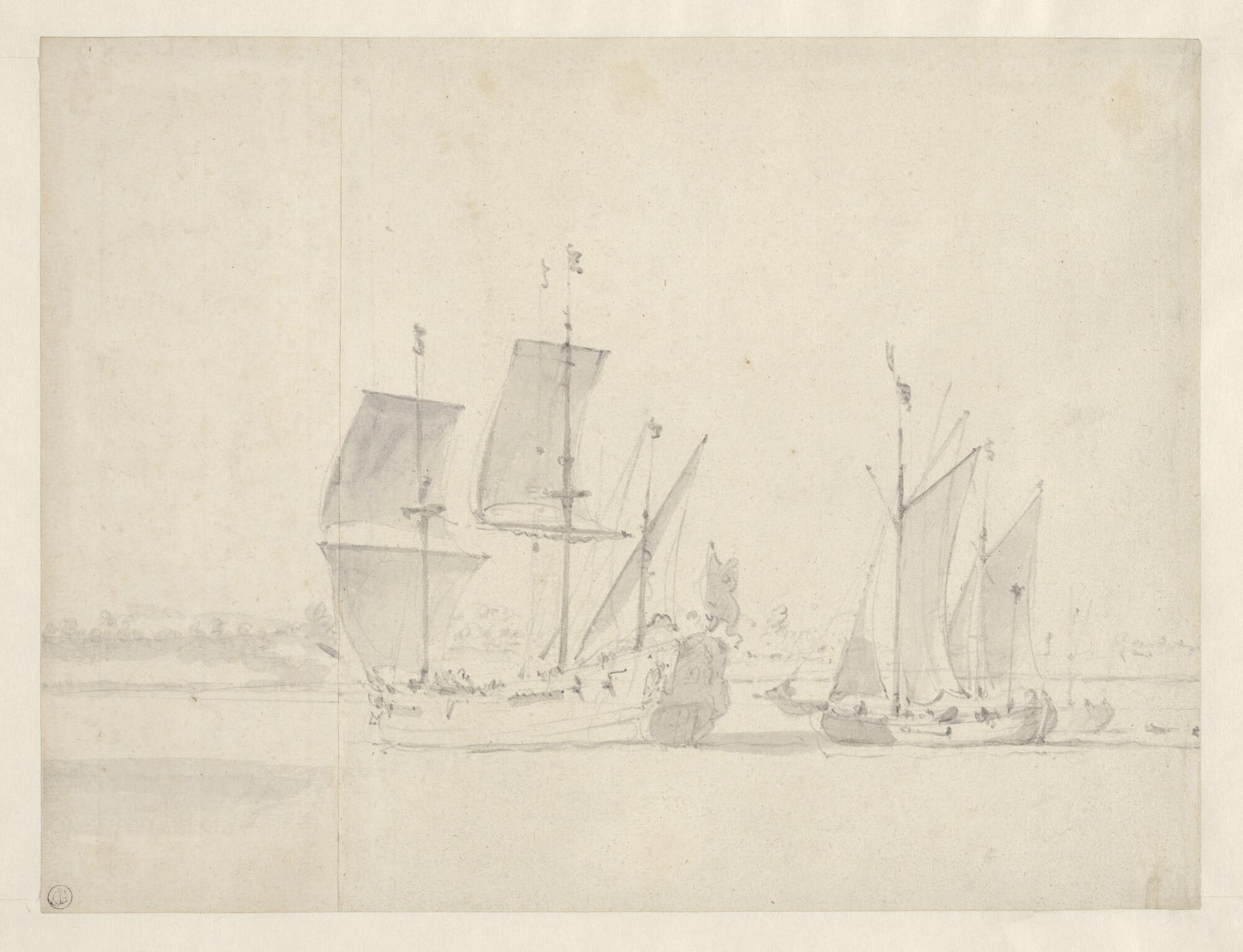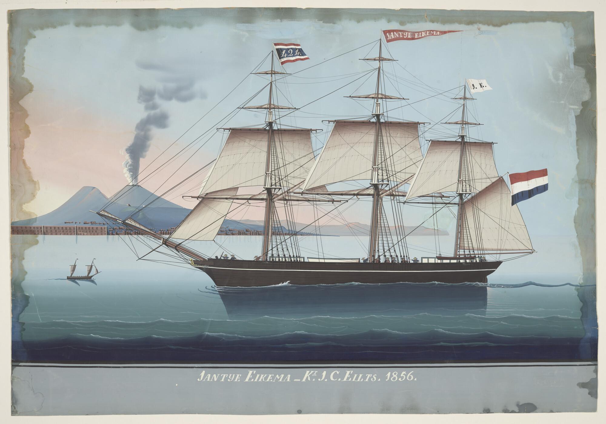 Het fregatschip Jantje Eikema met op de achtergrond ...