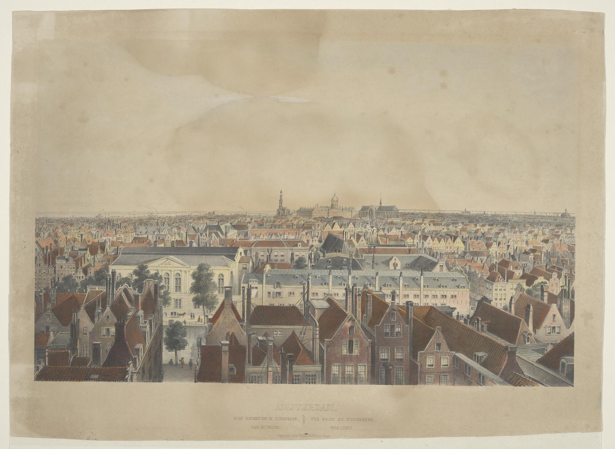 Gezicht op het IJ te Amsterdam met links een wegzeil...