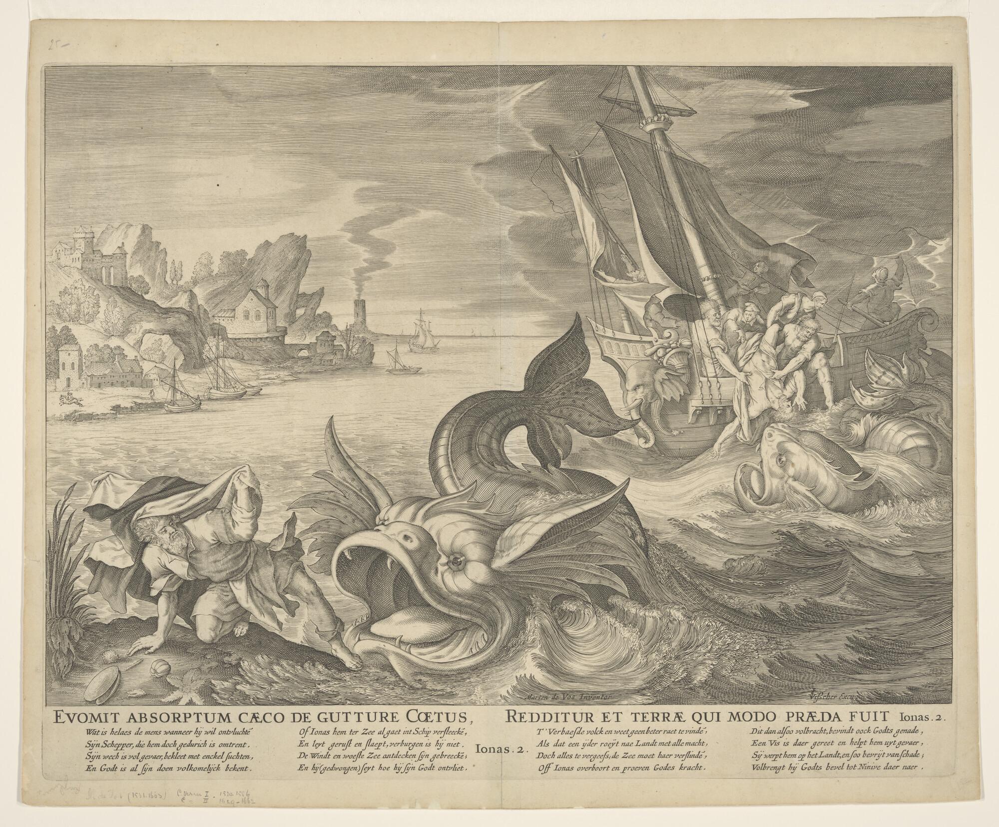 De Walvisvangst: de walvis wordt naar het schip geroeid