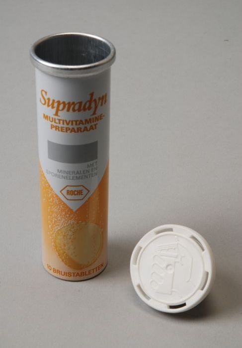 Kleine cilindrische koker in groen en wit voor bruis...