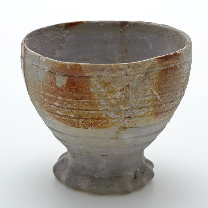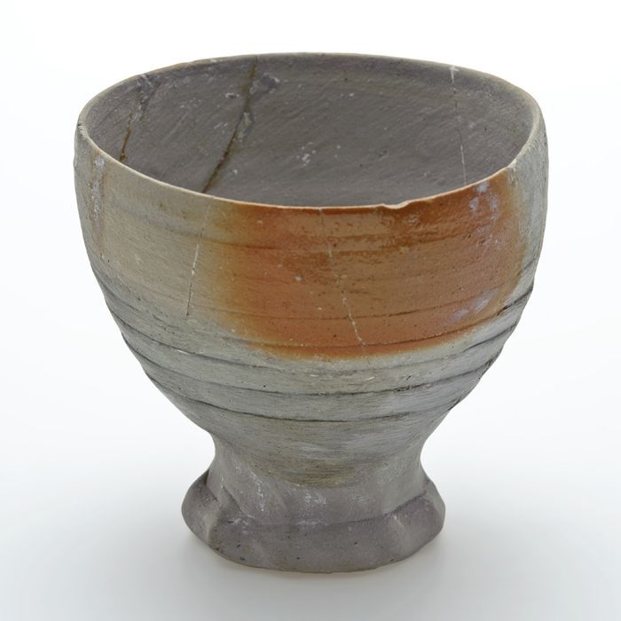 Steengoed beker op geknepen voet, grijs met bruin ge...