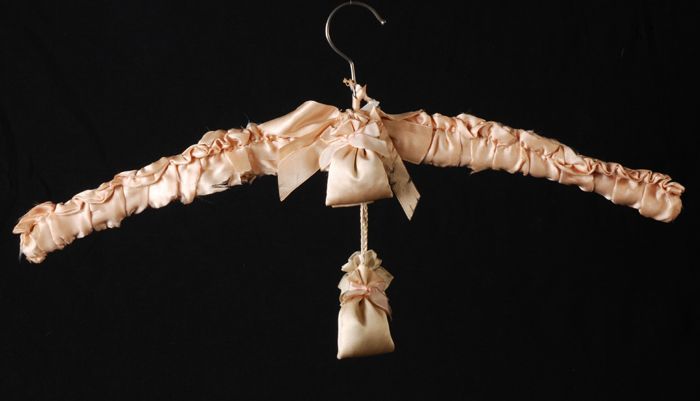 Kledinghanger bekleed met roze zijde, met aanhangend...