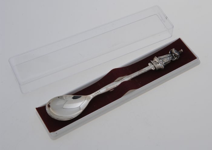 Theelepel met miniatuur van het standbeeld van Erasm...
