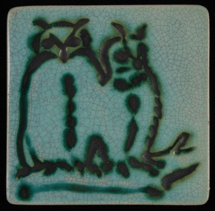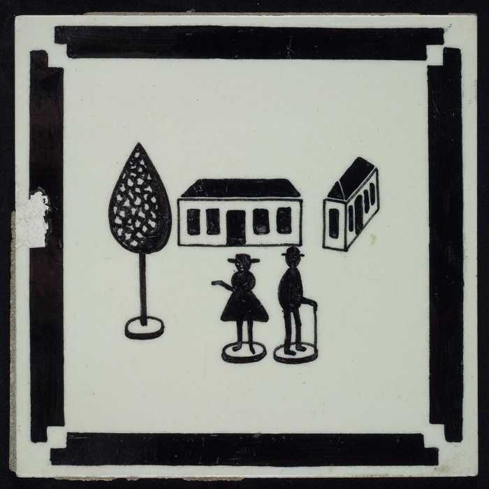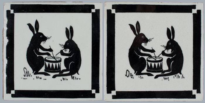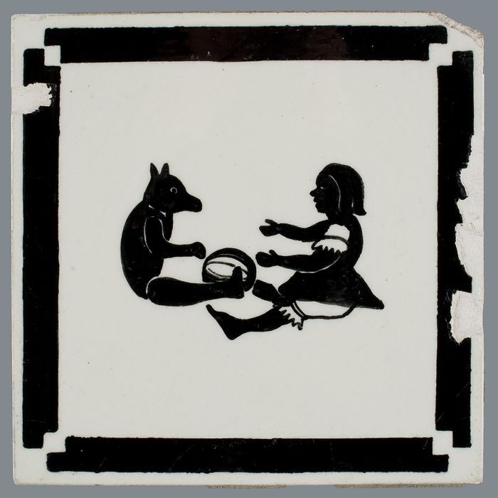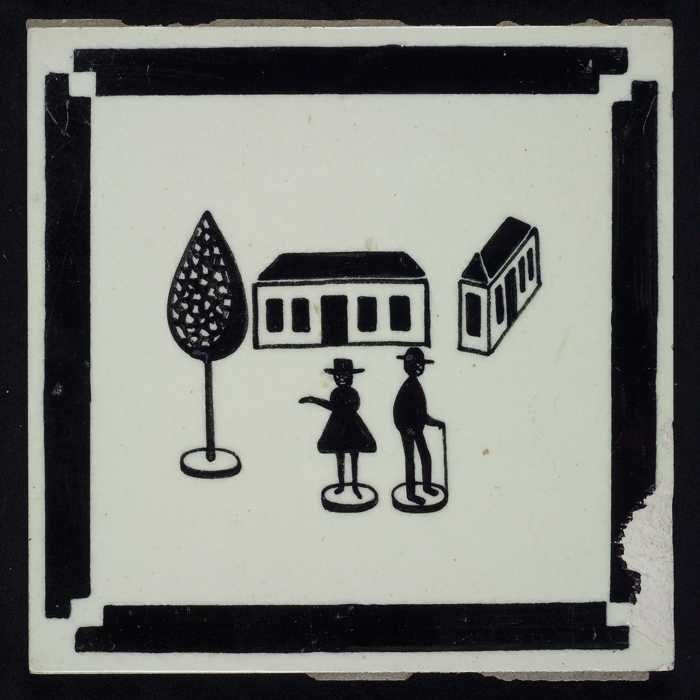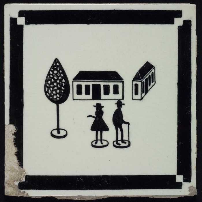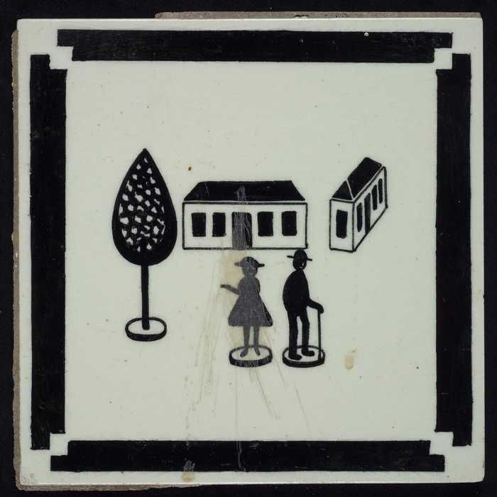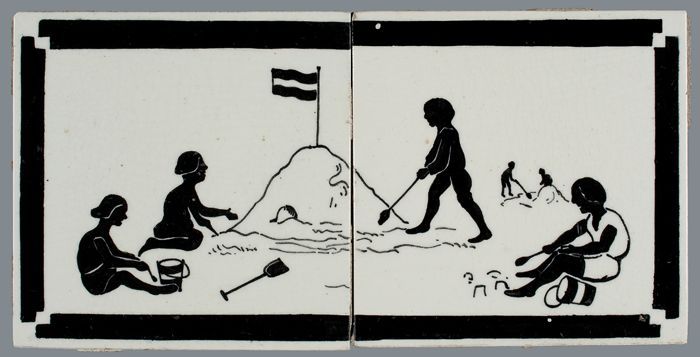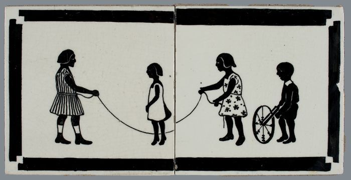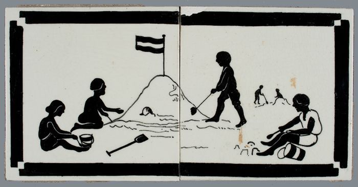 Kindertegel, minitableau van twee tegels, zwart op w...