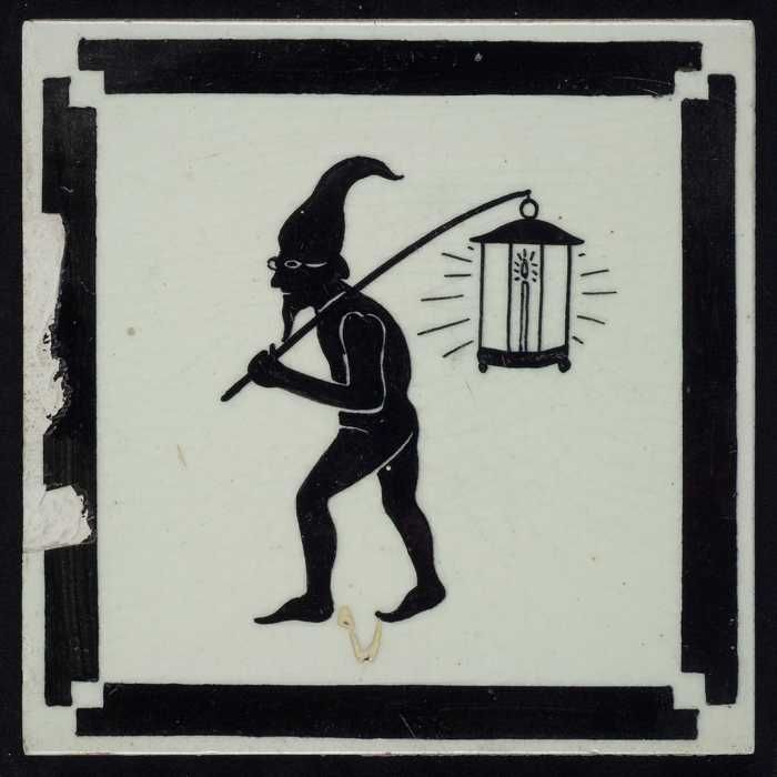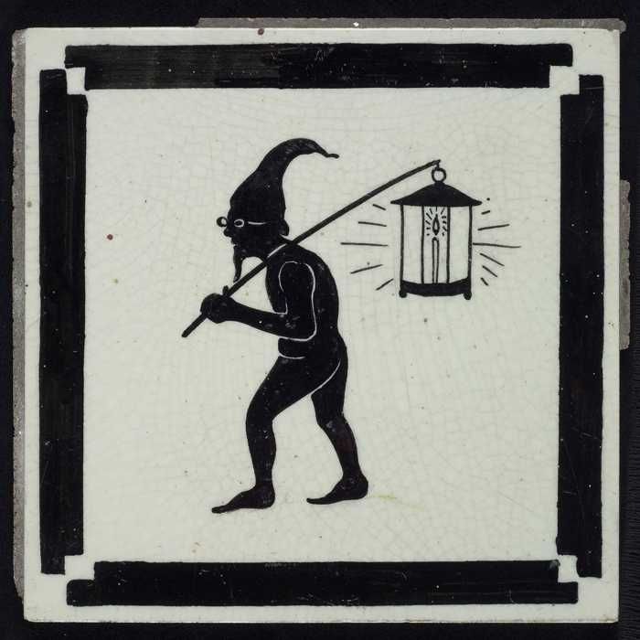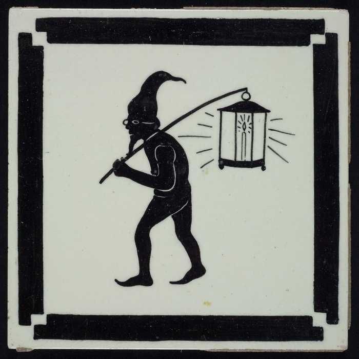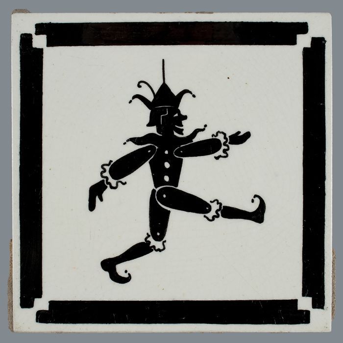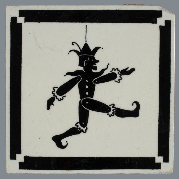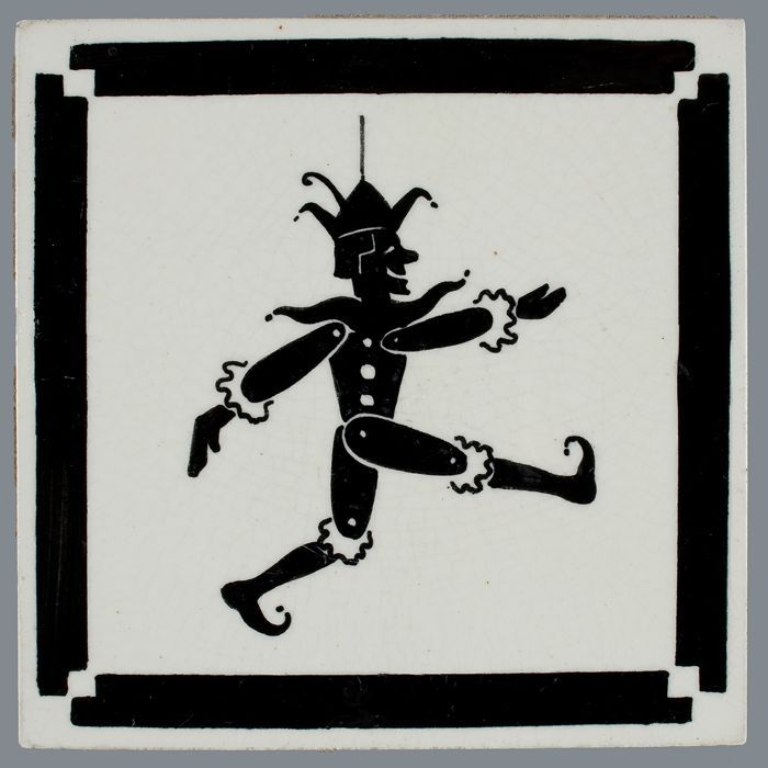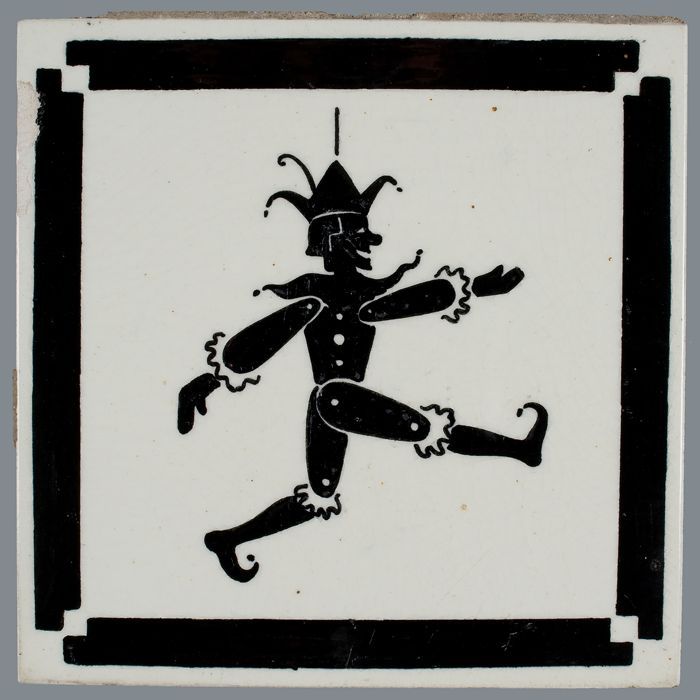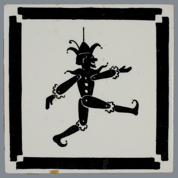 Kindertegel, zwart op wit, harlekijn / marionet, met...