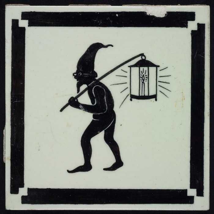 Kindertegel, zwart op wit met een kabouter met een l...