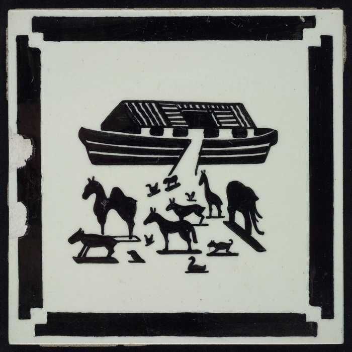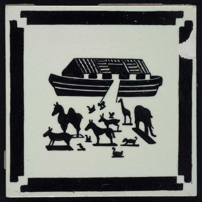 Kindertegel, zwart op wit met speelgoed ark van Noac...