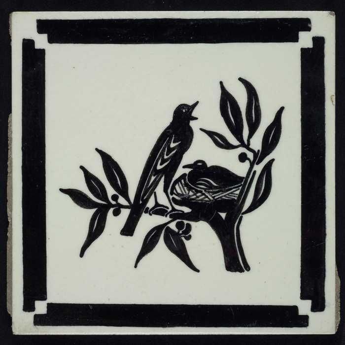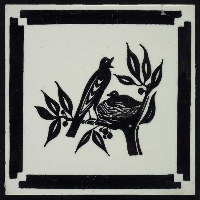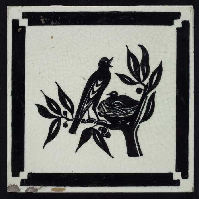 Kindertegel, zwart op wit met twee vogels met een ne...