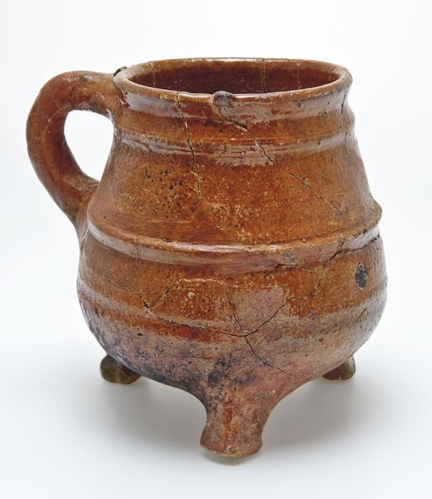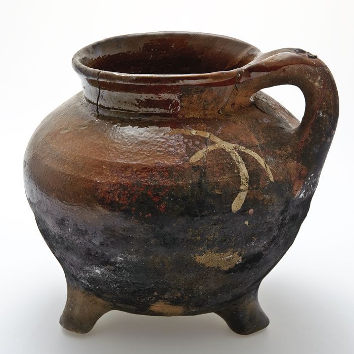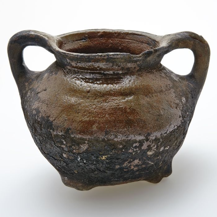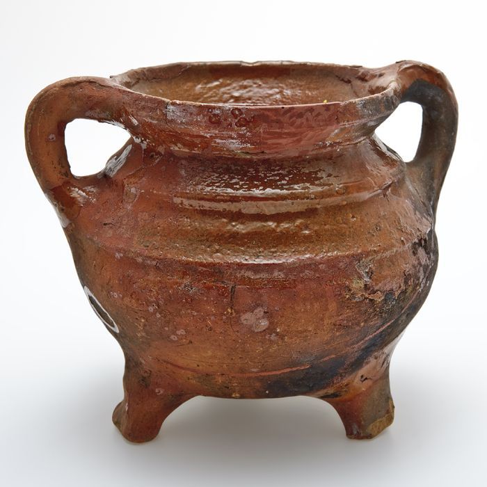 Aardewerk grape op drie afgebroken poten, twee oren,...