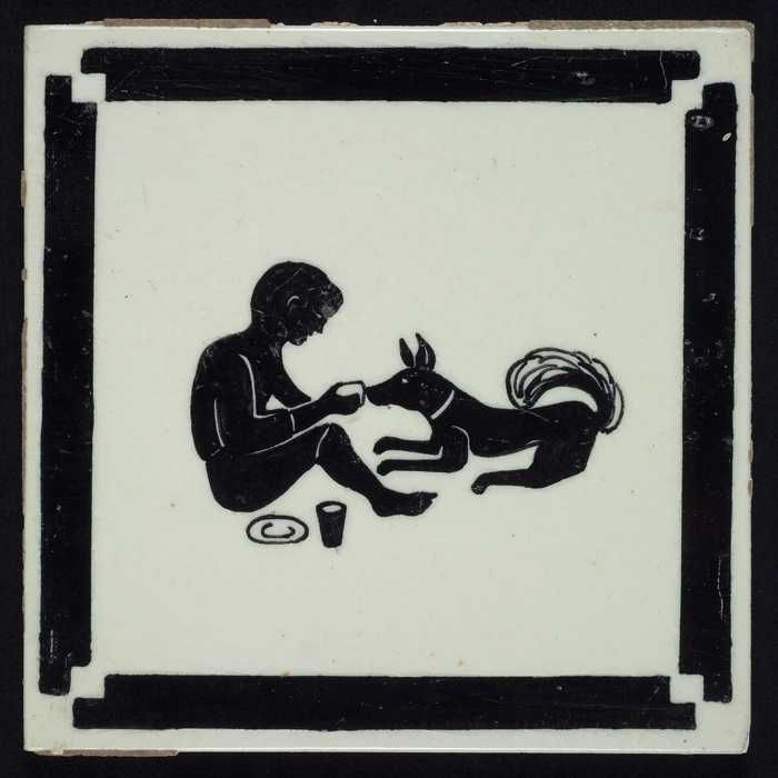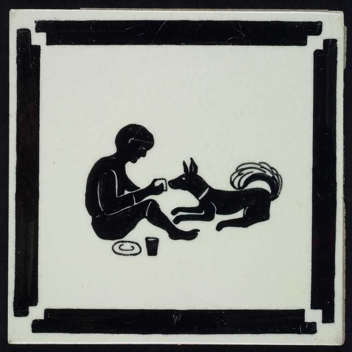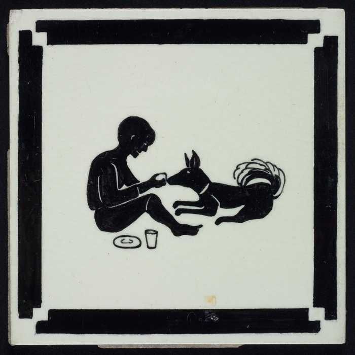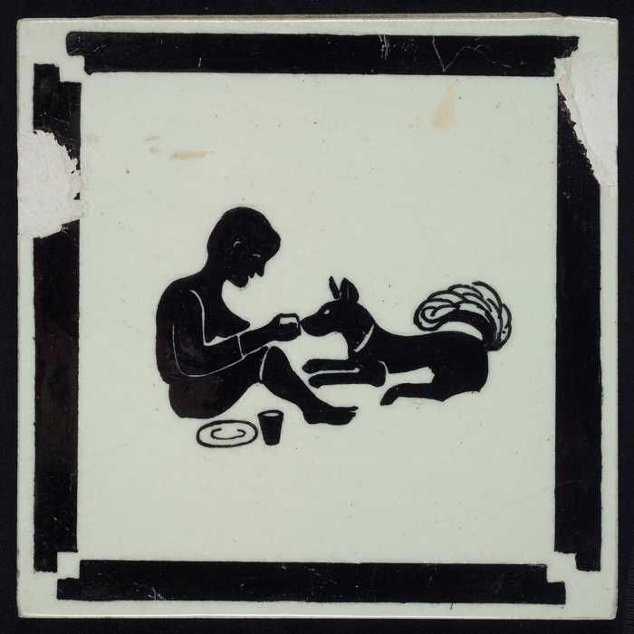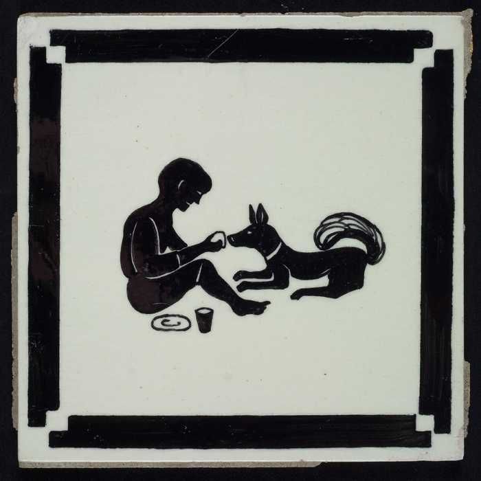 Kindertegel, zwart op wit met hond en kat met drinkb...