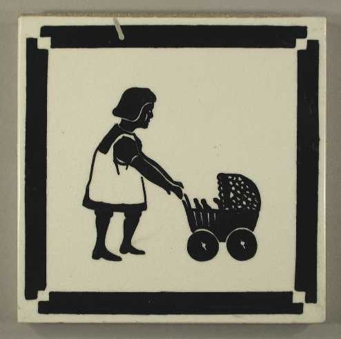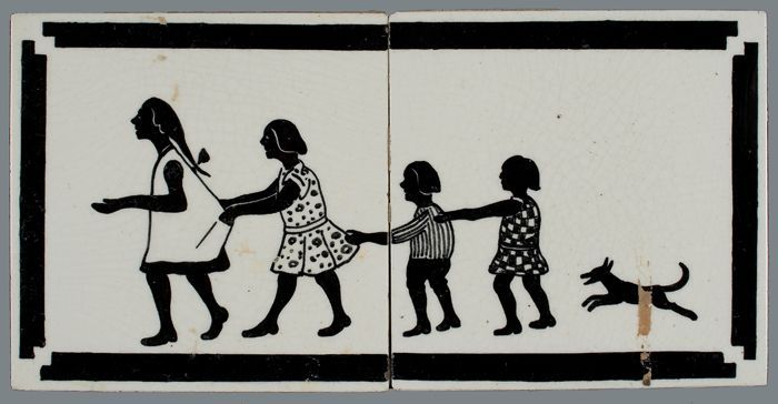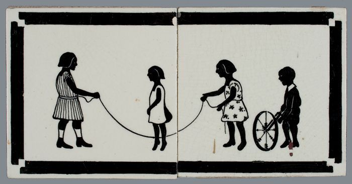 Tafereeltegel of kindertegel, zwart silhouet, meisje...