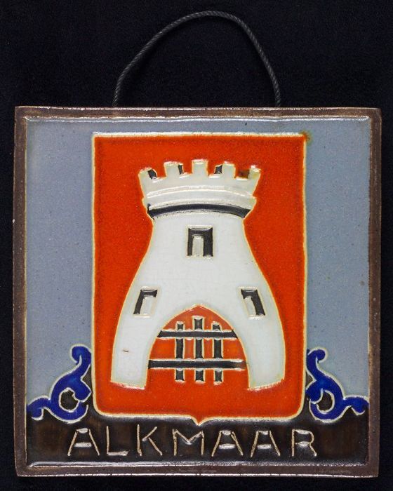 Wapentegel met wapen van Alkmaar: op rood wapenschil...