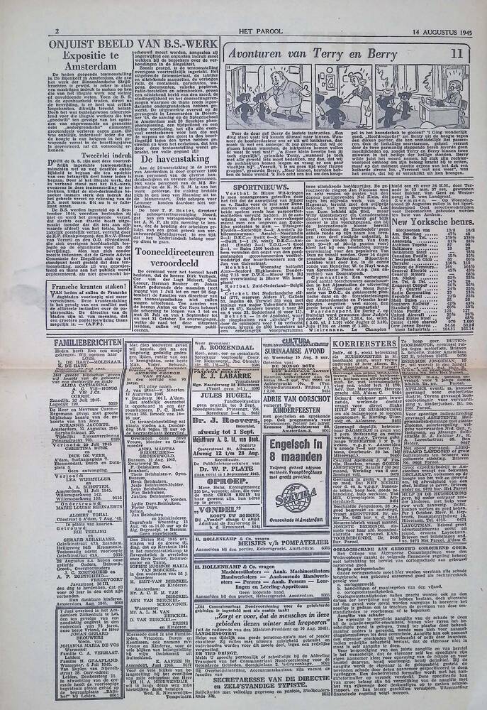 Het Parool, 14 augustus 1945, 5e Jaargang, No 184