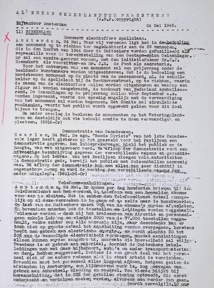 Algemeen Nederlandsch Persbureau, mededelingen, kant...