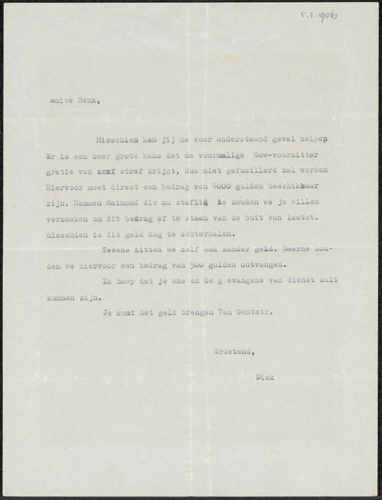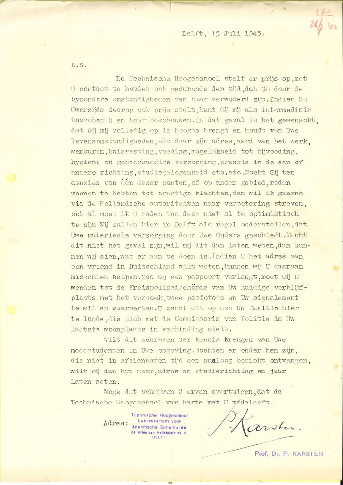Brief van prof. dr. P. Karsten aan Gé Verbeek in Wat...