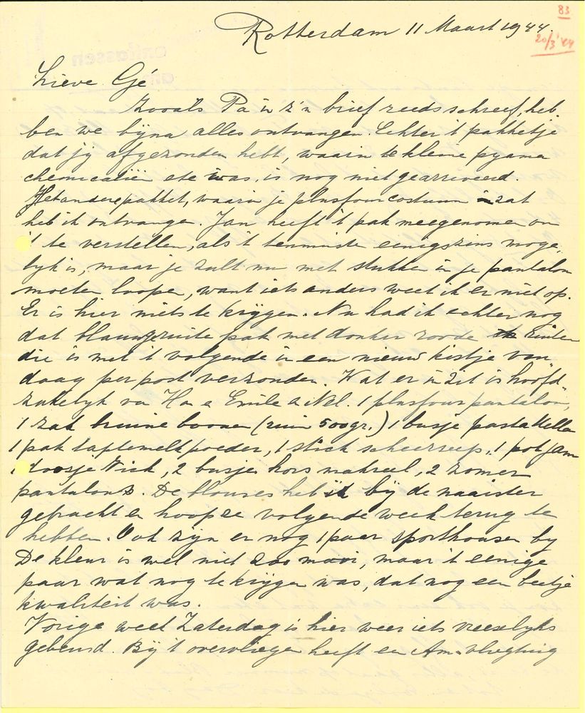Brief van moeder in Rotterdam aan Gé Verbeek in Wate...
