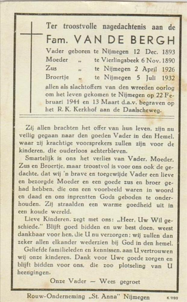 Nijmegen, 22 februari 1944; gevallen torenspits Augs...