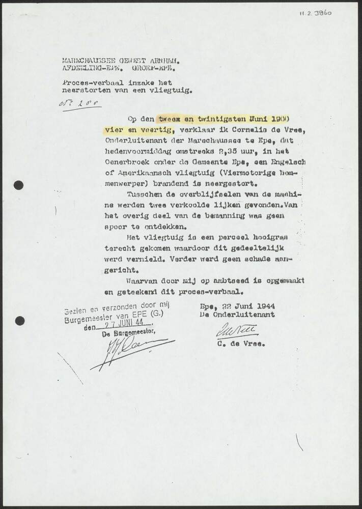 Bericht das niederkommen eines Flugzeuges am 26 mei ...